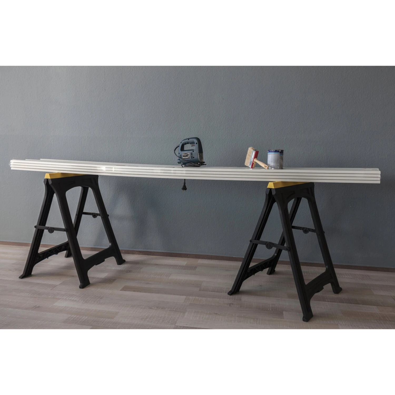 Das Klappbock-Set ist bei den verschiedensten Arbeiten einsetzbar und kann bis zu 170 Kilogramm belastet werden. Es dient als ideale Stütze bei Arbeiten in Ihrem Zuhause oder auf dem Bau.