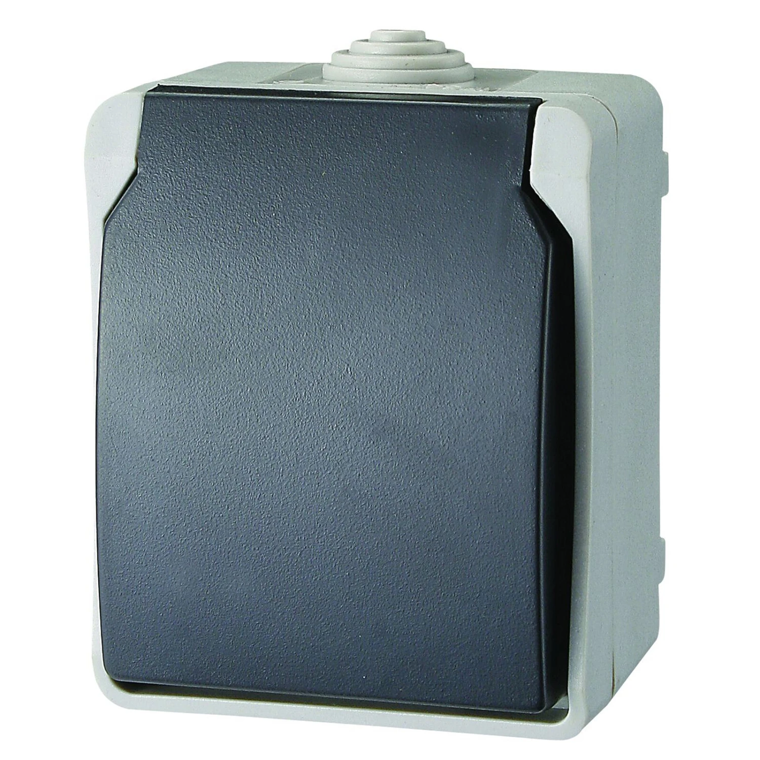 Aufputz-Schutzkontaktsteckdose – grau – mit Kinderschutz