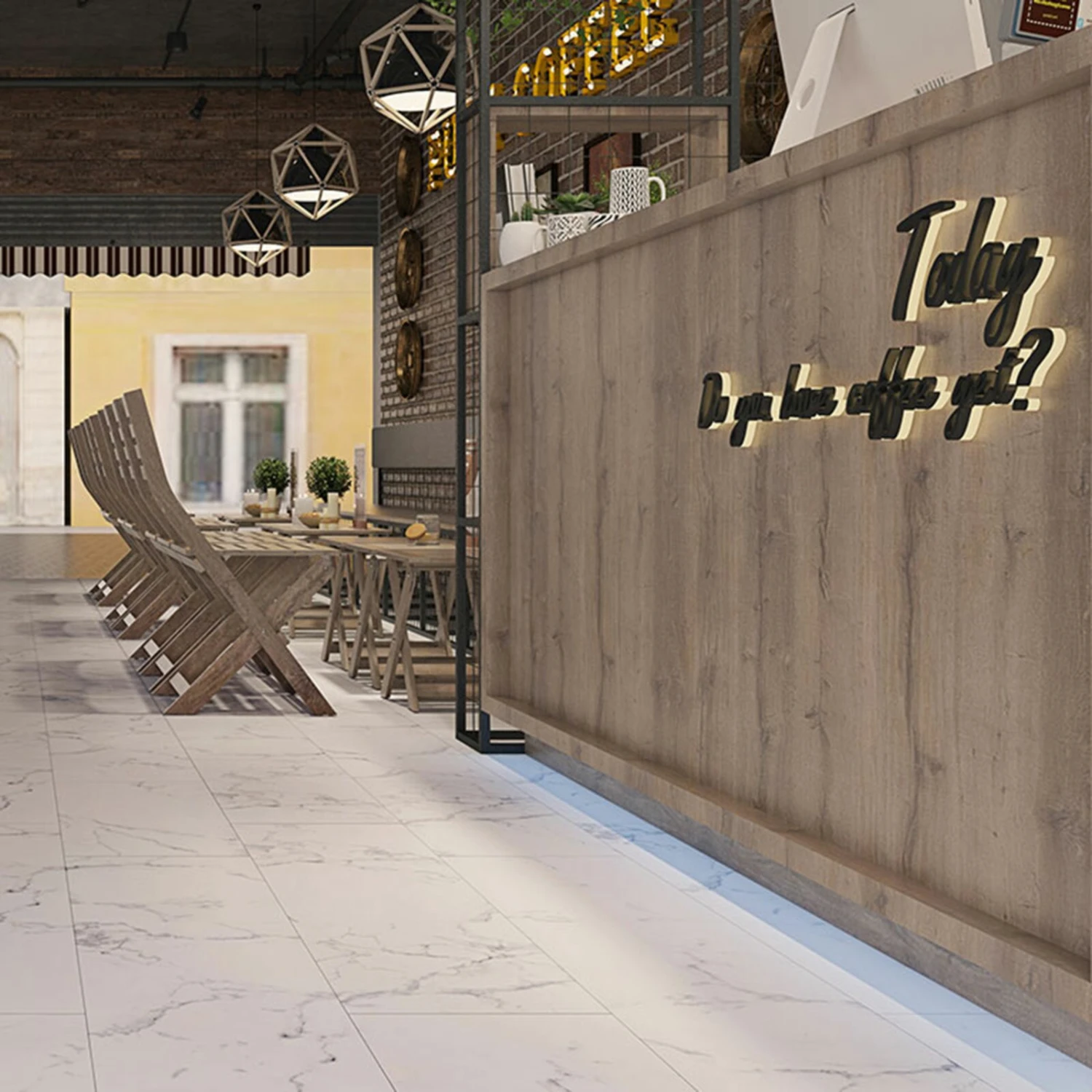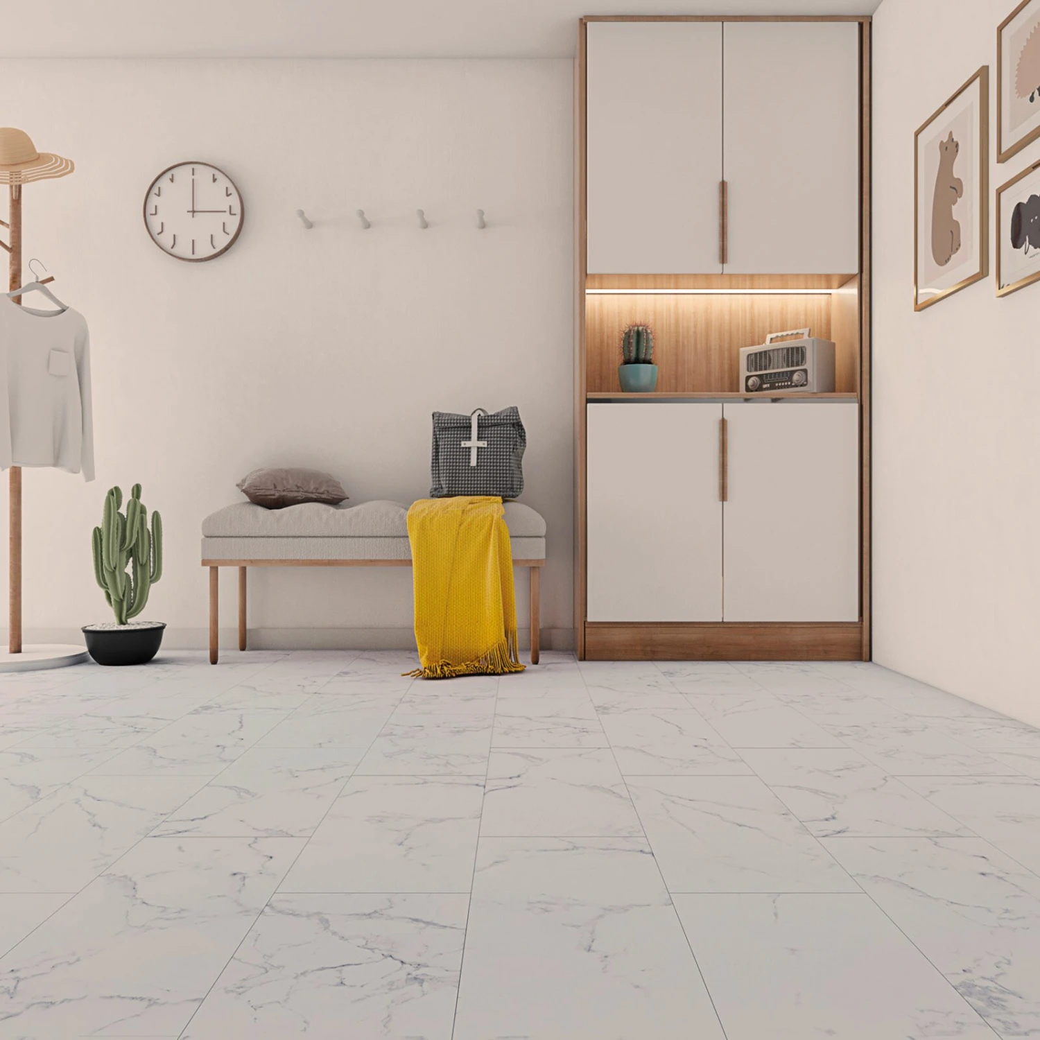 Dieser moderne Click-Vinyl Boden in Marmor-Optik wird zum neuen Hingucker. Der Click-Vinyl ist besonders einfach zu verlegen und zudem auch sehr pflegeleicht. Der etwa 62×31 cm große Boden eignet sich für die Nutzung mit einer Fußbodenheizung und punktet außerdem mit integrierter Trittschallreduzierung.