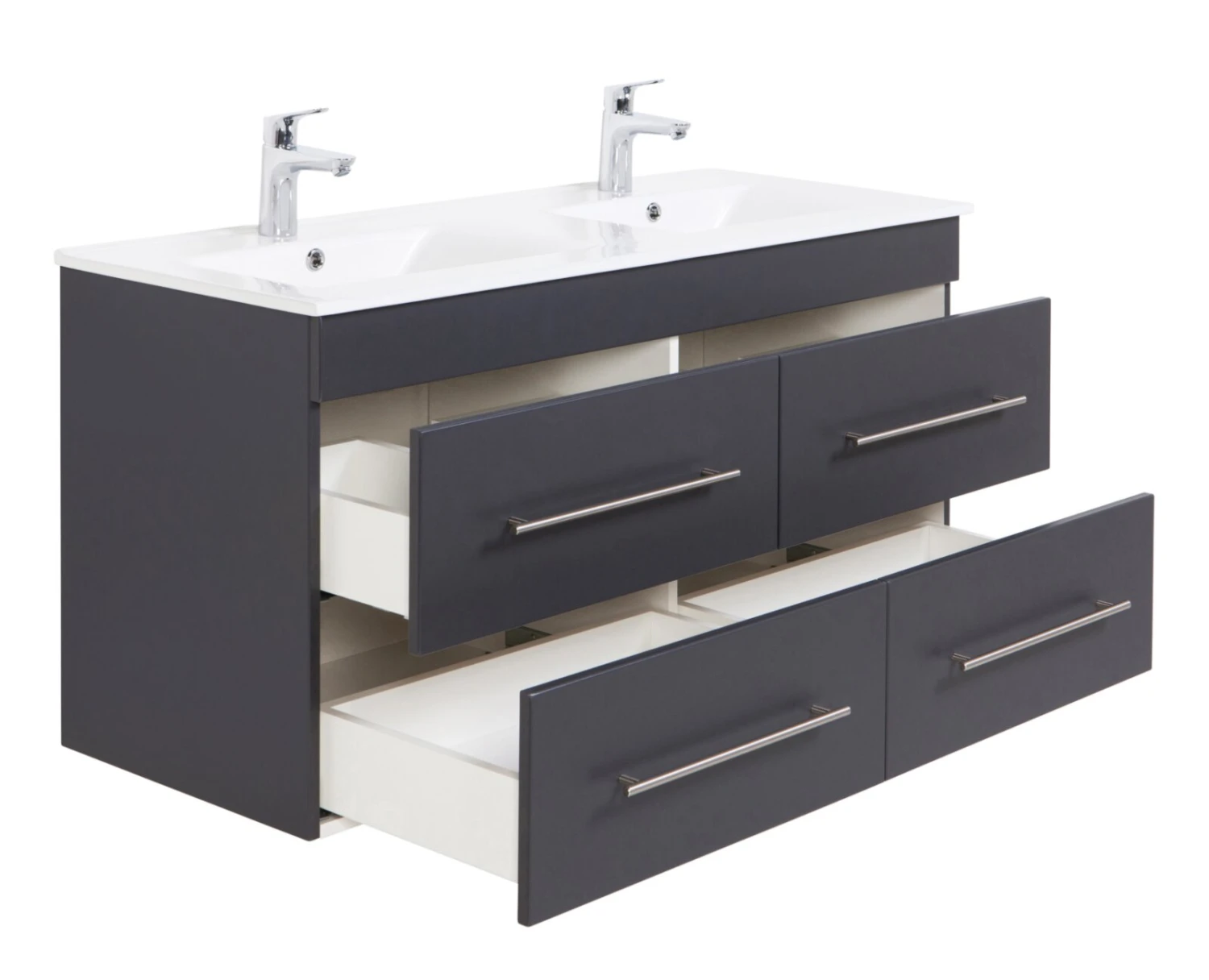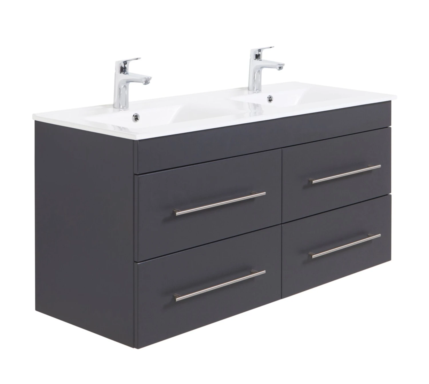 Doppelwaschtisch HOMELINE – anthrazit Seidenglanz – 2 Waschbecken – 120 cm