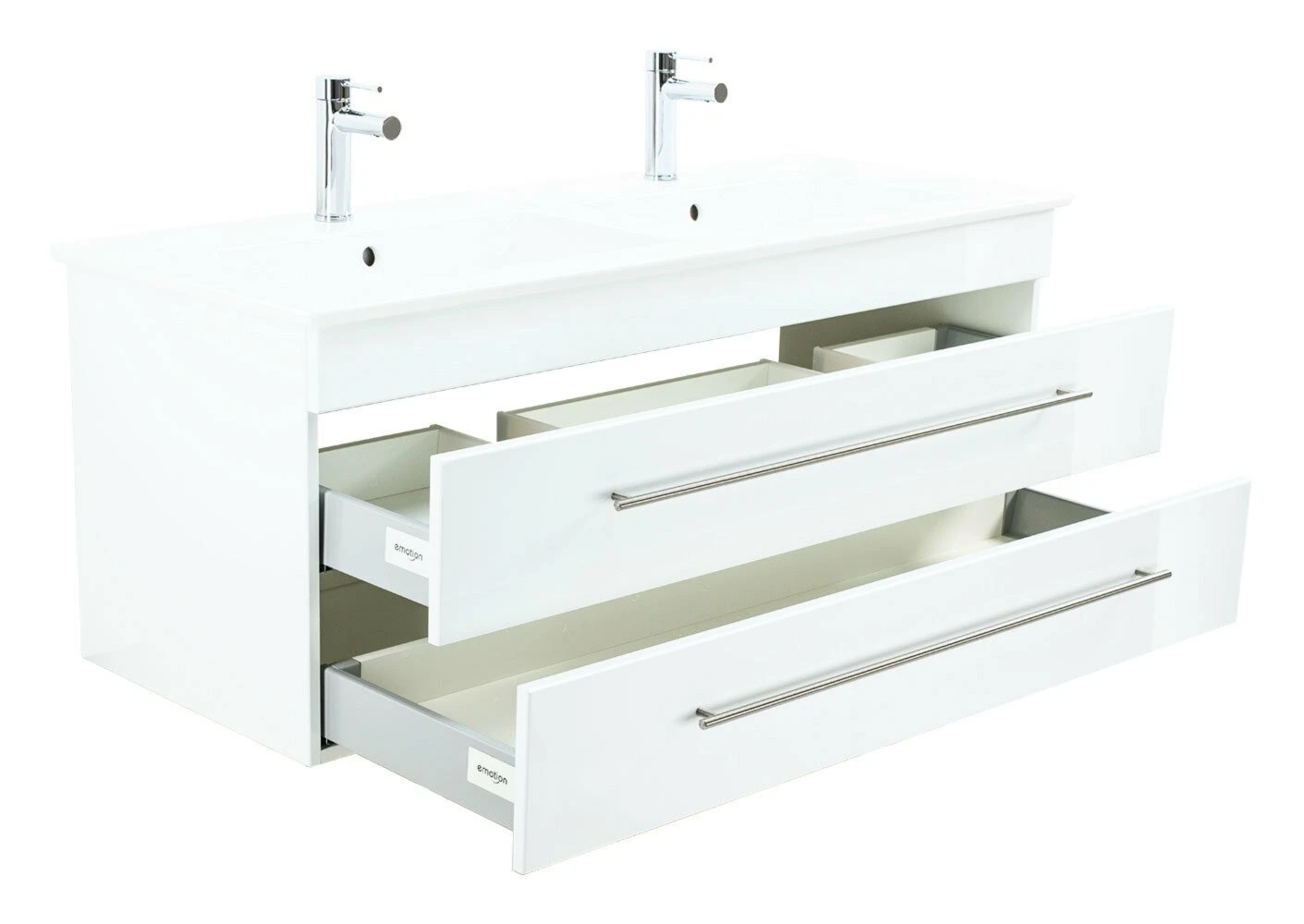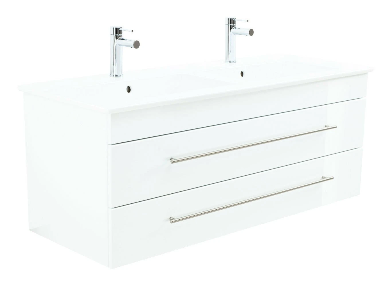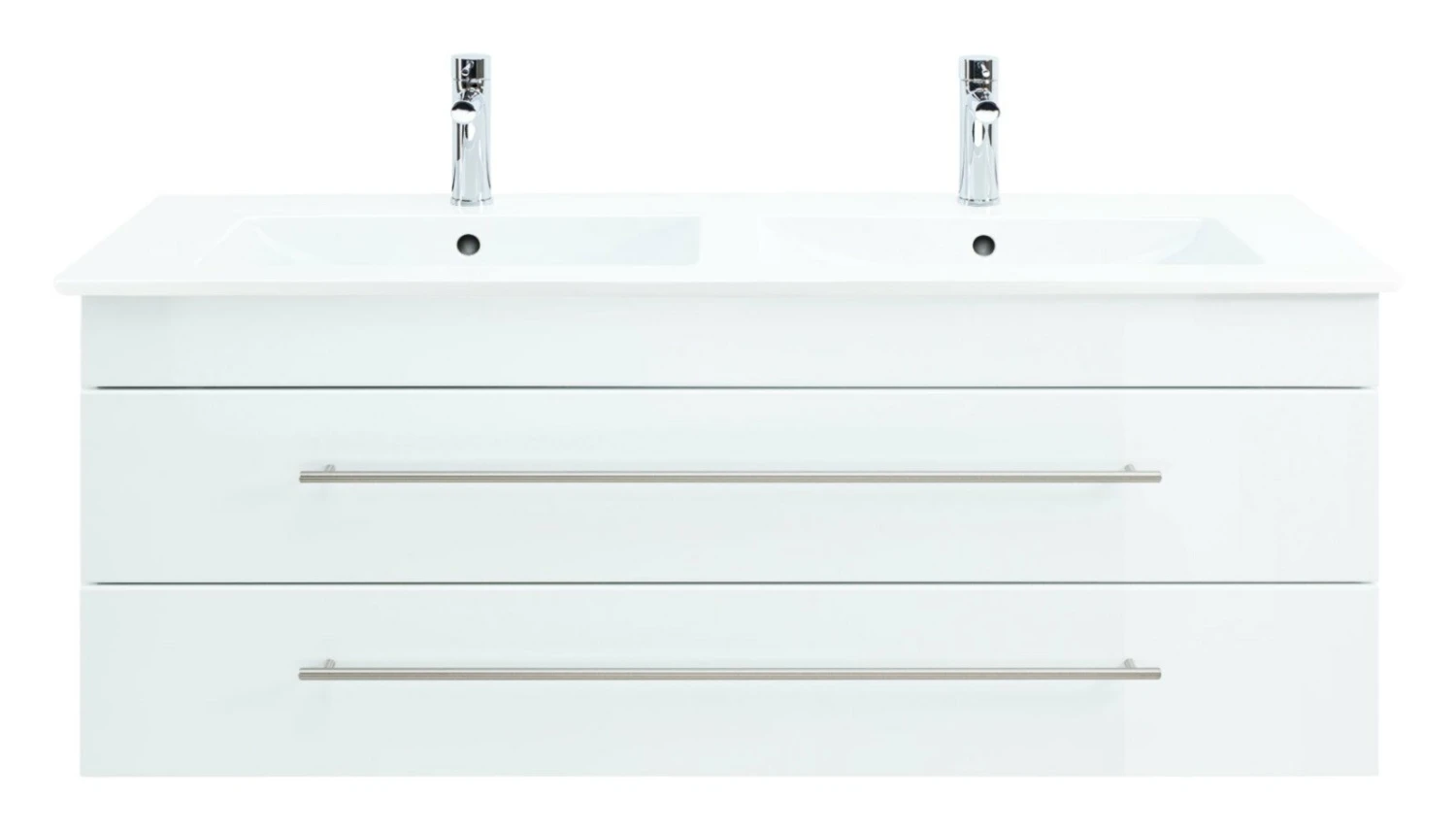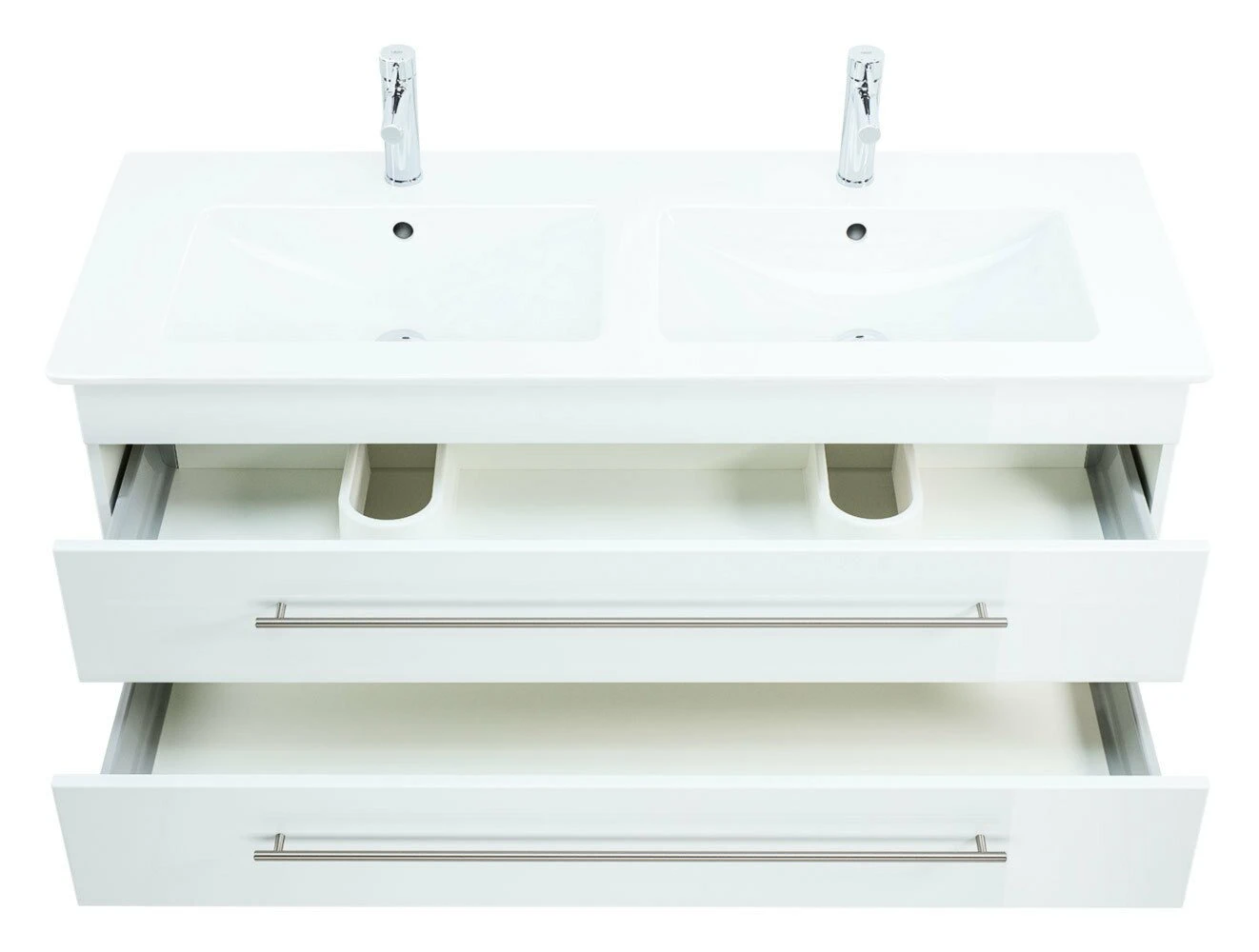 Doppelwaschtisch VENTICELLO – weiß Hochglanz – mit Keramikbecken