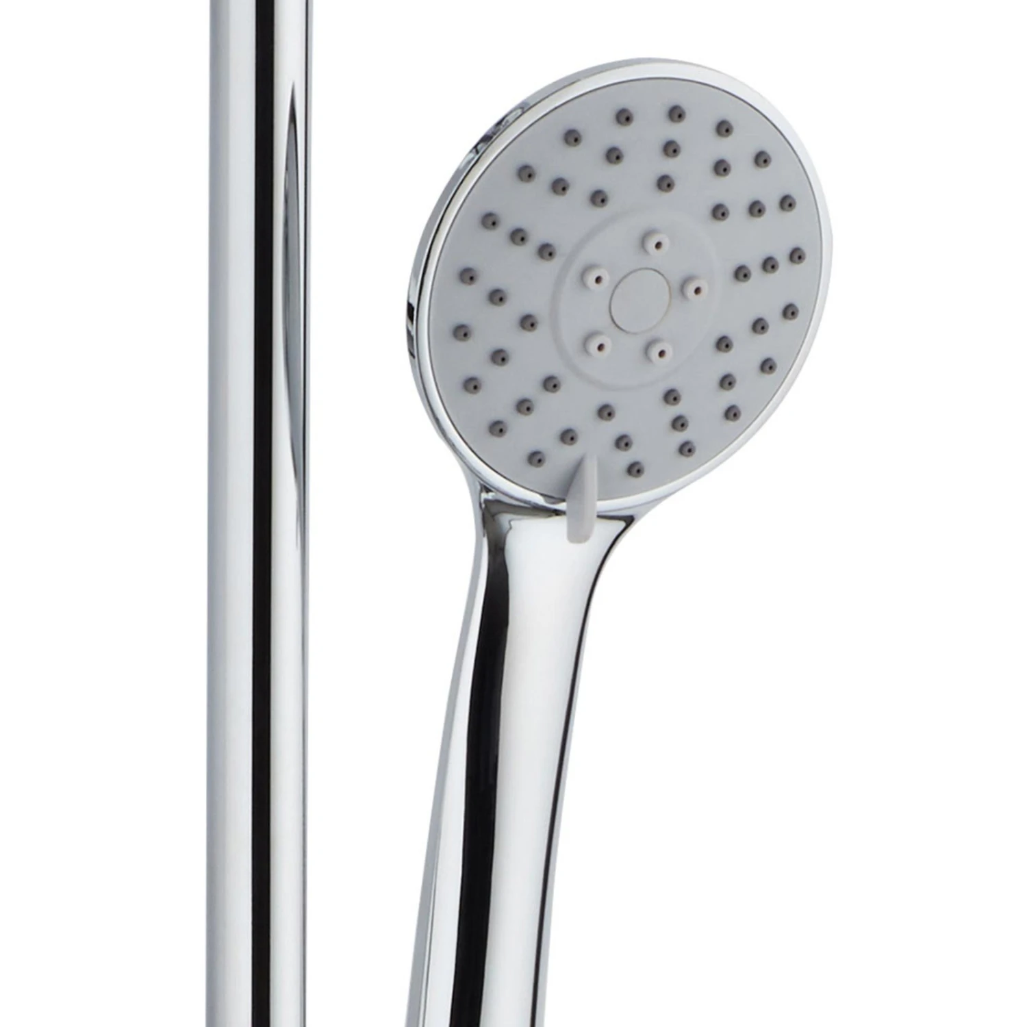 In edlem Chrom und im modernen Design präsentiert sich dieses Duschbrause-Set, bei dem die praktische Handbrause im Lieferumfang mit inbegriffen ist. Durch die höhenverstellbare Wandhalterung können bereits vorhandene Bohrlöcher praktischerweise genutzt werden.