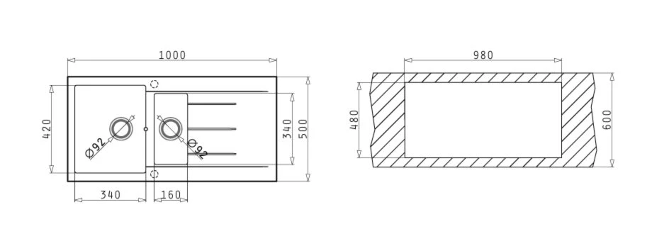 - Restebecken: BxHxT ca. 16 x 15 x 34 cm