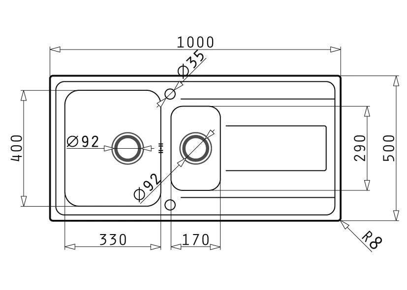 - Spülenmaß: BxT ca. 100 x 50 cm