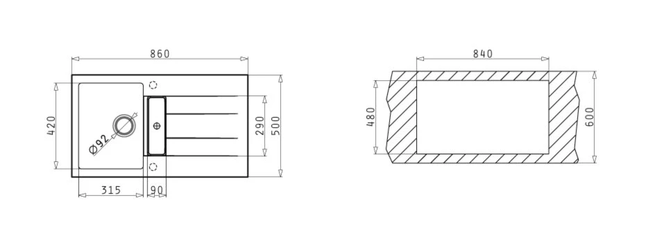 - Maße Restebecken: BxHxT ca. 9 x 6,6 x 29 cm