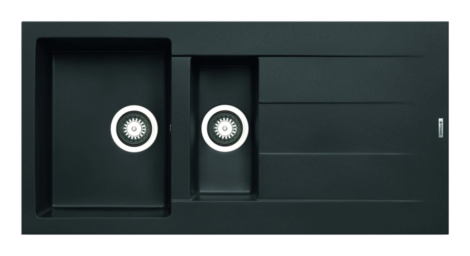 Die fabelhafte Einbauspüle ATHLOS in der Farbe Carbon ist besonder schick und sehr robust. Sie verfügt über ein Spülbecken, ein Restebecken sowie eine Abtropffläche und ist mit dem praktischen Drehexcenter-Siebkorbventil ausgestattet.