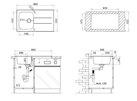 Die Einbauspüle CONCERTO 1B 1D verfügt über ein Edelstahl-Spülbecken sowie eine Abtropffläche aus facettengeschliffenem Sicherheitsglas. Das Spülbecken eignet sich für dn Einbau in Unterschränke ab einer Breite von 45 cm.