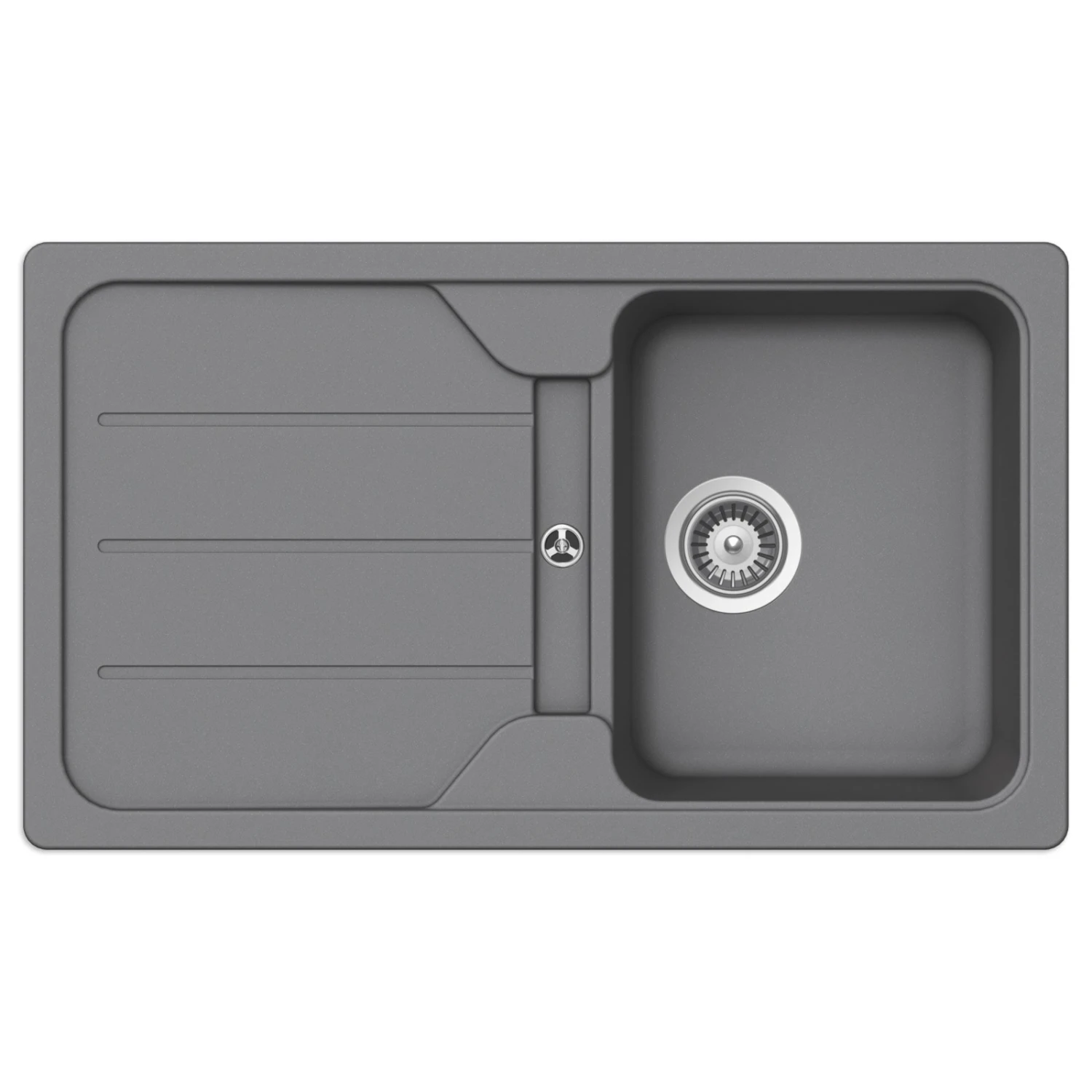 Schöne Spüle aus Cristalite®+, welches Quarz als Grundlage besitzt und somit sehr robust ist. Sie ist damit ideal für den täglichen Gebrauch in der Küche geeignet. Der Grauton Croma passt sehr gut zu modernen oder weißen Küchen, da sie einen dezenten Farbtupfer setzt. Im Lieferumfang ist die Ablaufgarnitur mit 3 1/2″ inklusive, genauso wie das Korbventil. Die Spüle ist nutzbar, ab einem Unterschrank mit der Breite von ca. 45 cm.
