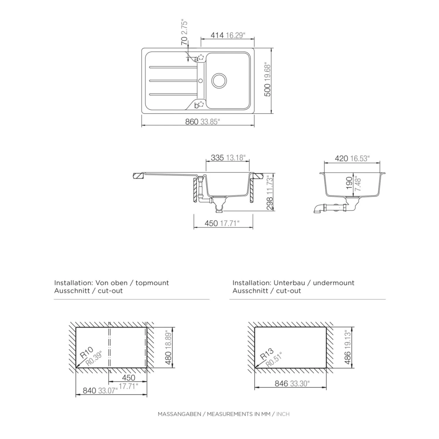 Einbauspüle – Onyx – Cristalite+ – 86×50 cm