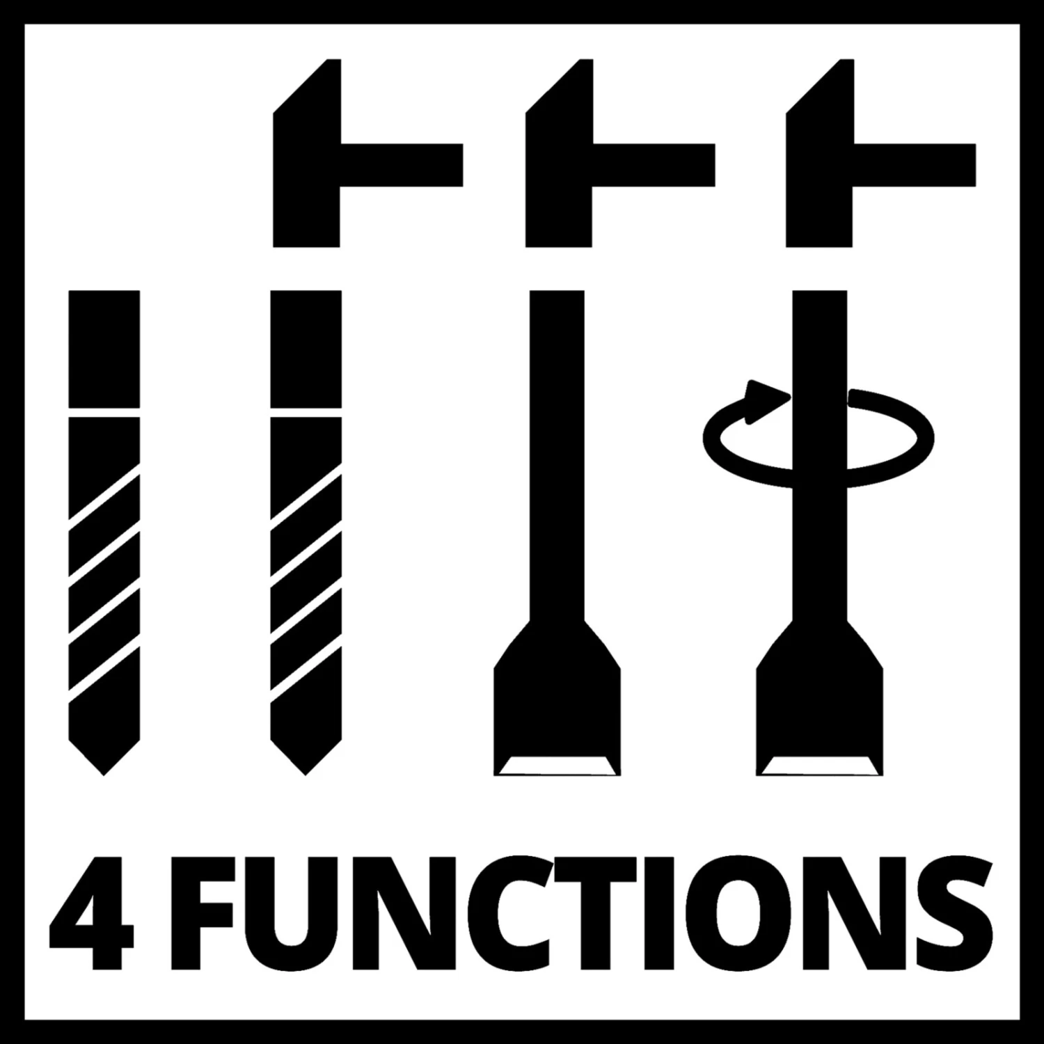 - mit 4 Funktionen: Bohren, Hammerbohren, Meißeln mit und ohne Fixierung