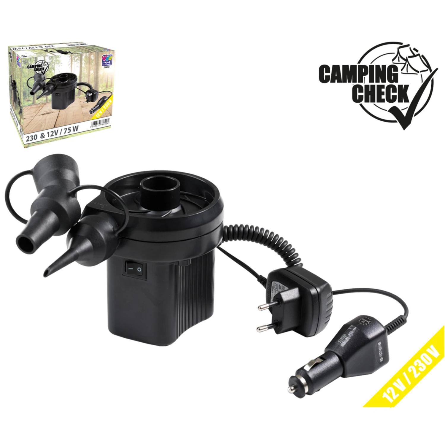 Mit dieser elektronischen Kompressorpumpe in Schwarz ist das Auf- und Abpumpen von Luft besonders einfach. Mithilfe des Autoanschlusses kannst du die Pumpe praktischerweise überall einsetzen. Mit den verschiedenen Adaptern erhälst du den Anschluss an alle gängigen Ventilgrößen. Die Kabellänge von etwa 3 Metern ist ausreichend, sodass man auch weit entfernte Produkte aufblasen kann.