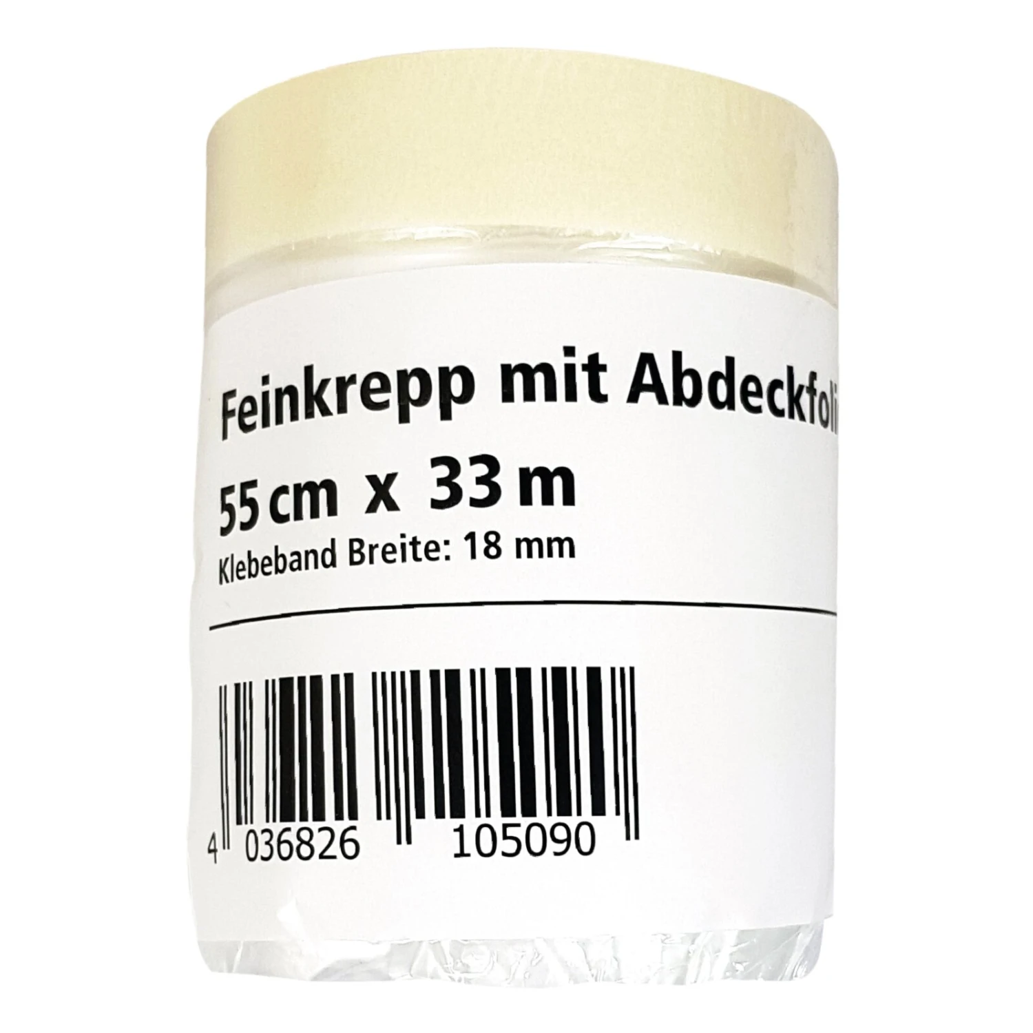 Feinkrepp inklusive Abdeckpapier zum abkleben und abdecken bei Streich- und Tapezierarbeiten. Ihr Boden und die Leisten sind somit vor heruntertropfender Farbe geschützt.