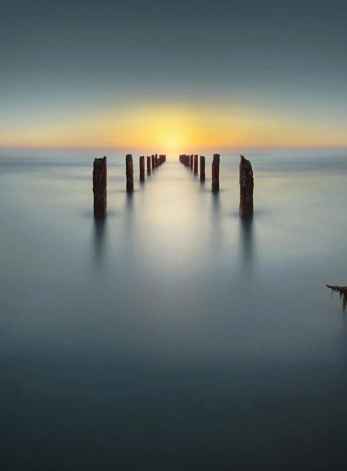 Fototapete DESIGNWALLS 2.0 – blau-gelb – Steg – 2,6 Meter