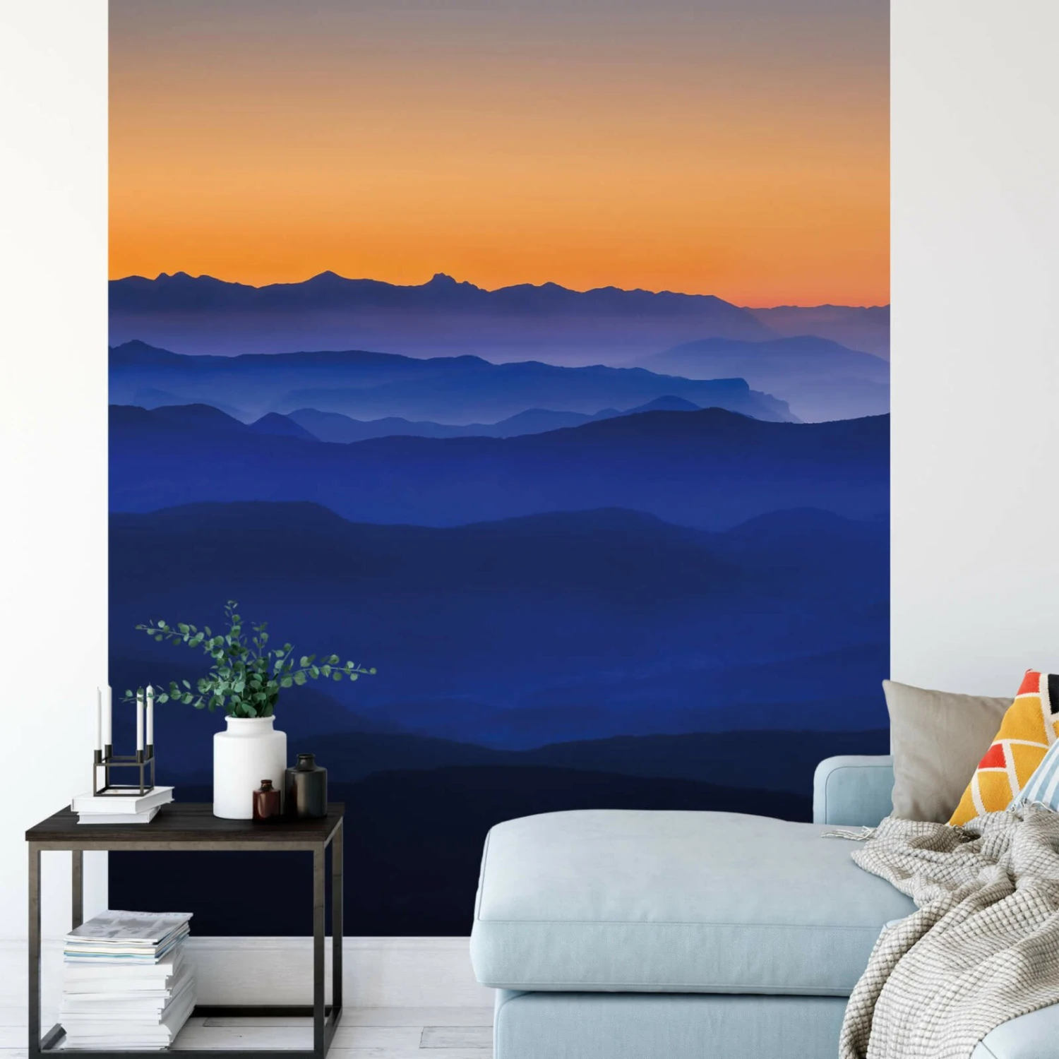 Fototapete DESIGNWALLS 2.0 – blau-orange – Berge – 2,6 Meter