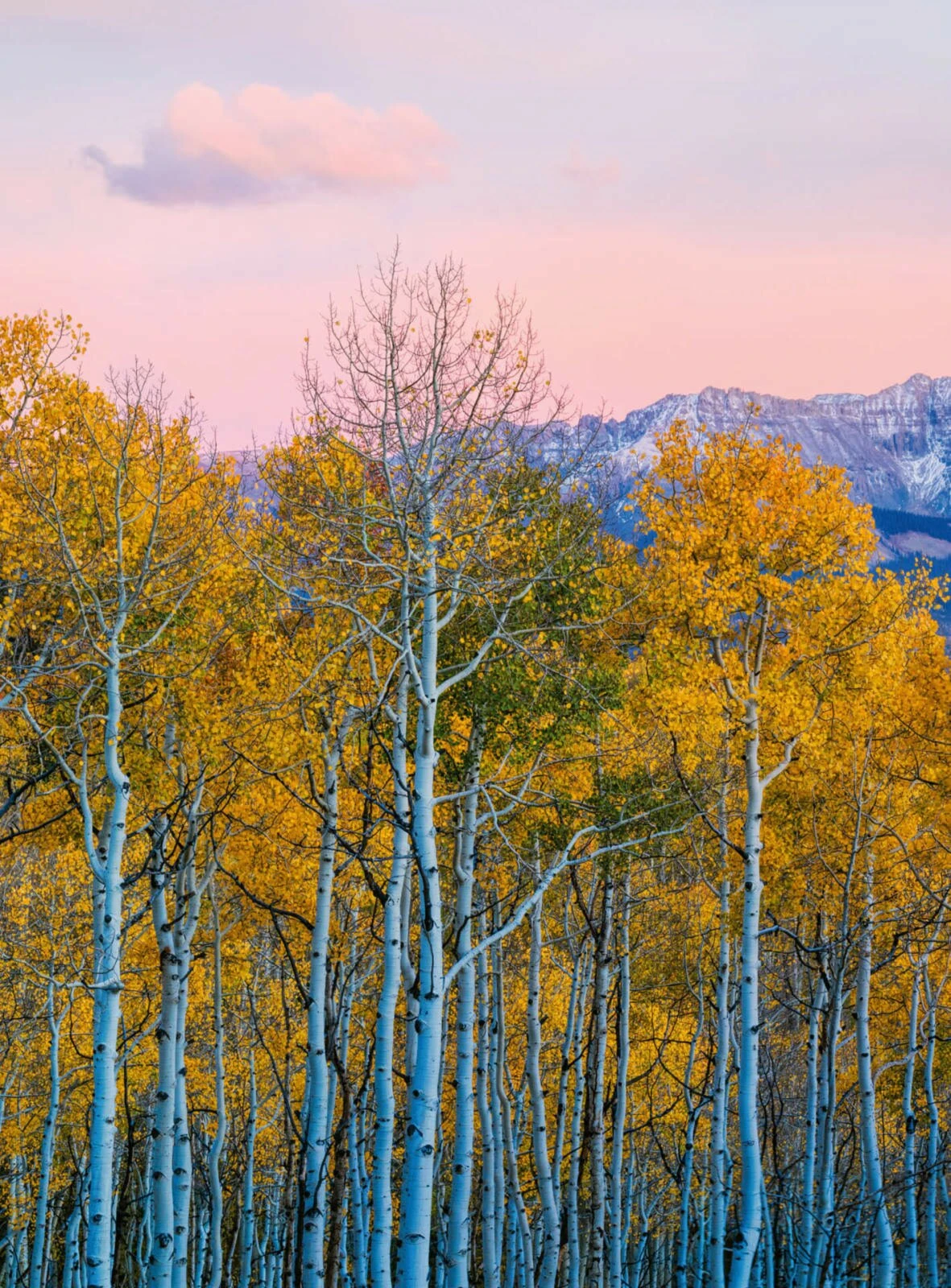 Fototapete DESIGNWALLS 2.0 – gelb-weiß – Birkenwald – 2,6 Meter