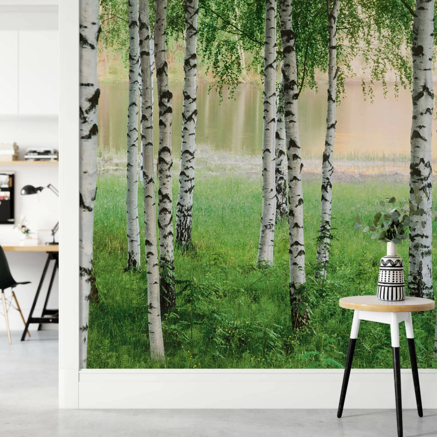 Fototapete DESIGNWALLS 2.0 – grün-weiß – Birkenwald – 2,5 Meter