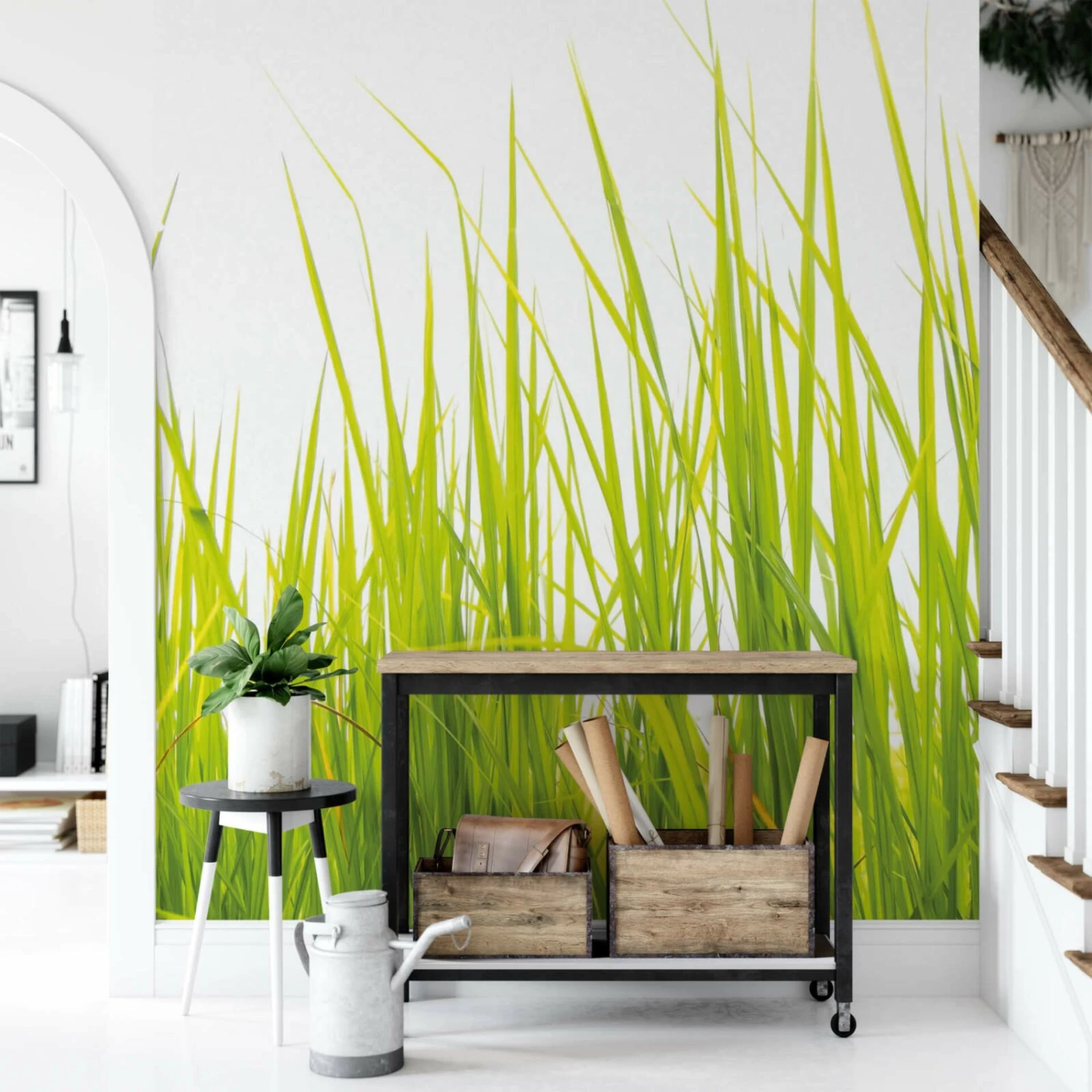 Fototapete DESIGNWALLS 2.0 – grün-weiß – Gras – 2,6 Meter