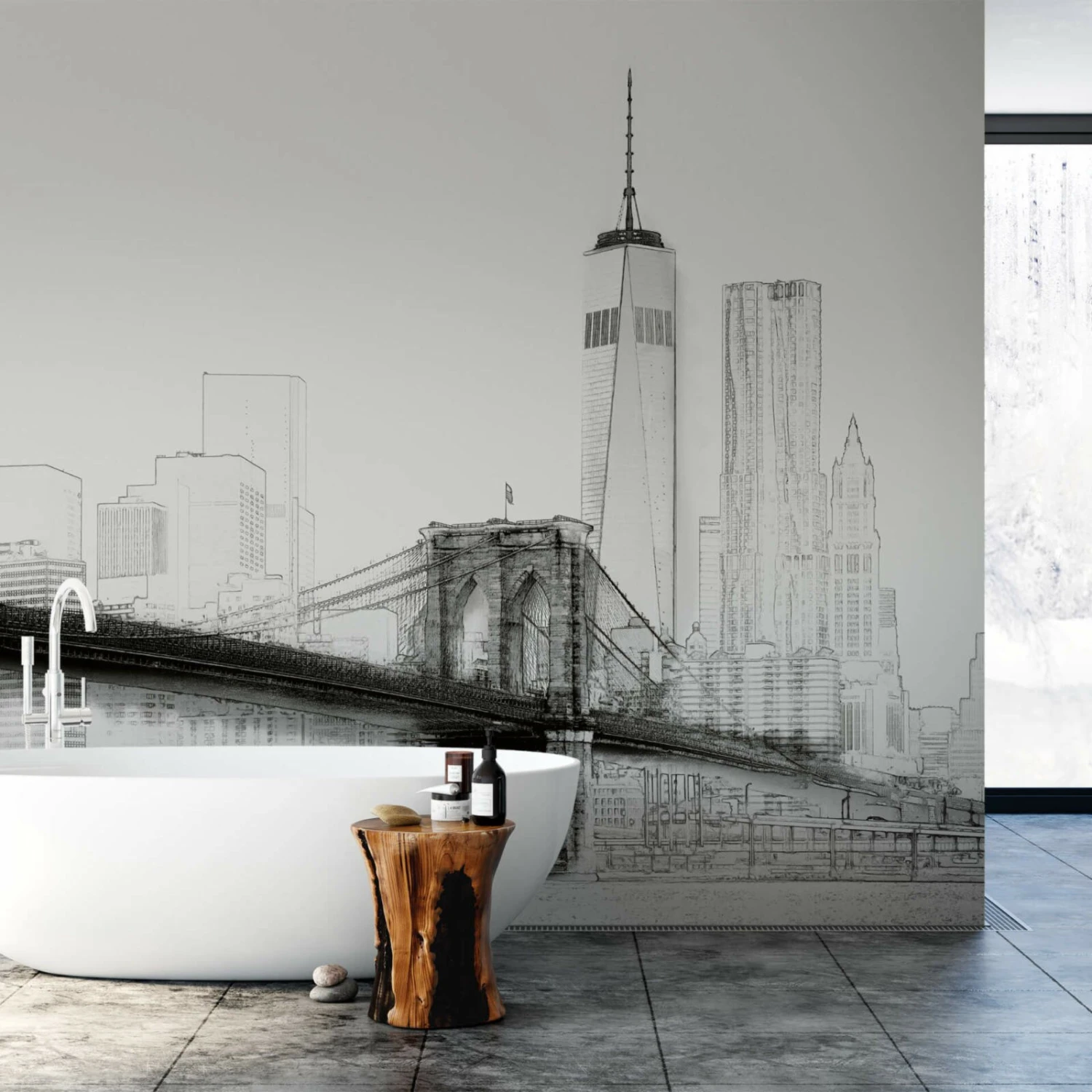 Mit unserer wunderschönen New York Fototapete in der Farbe Schwarz sorgen Sie in Ihren vier Wänden für einen richtigen Eye Catcher. Die Tapete begeistert durch ihre Qualität und besteht aus einem hochwertigen Vlies. Sie ist waschbeständig, gut lichtbeständig und restlos trocken abziehbar. Die Maße sind 3,84 Meter x 2,6 Meter.