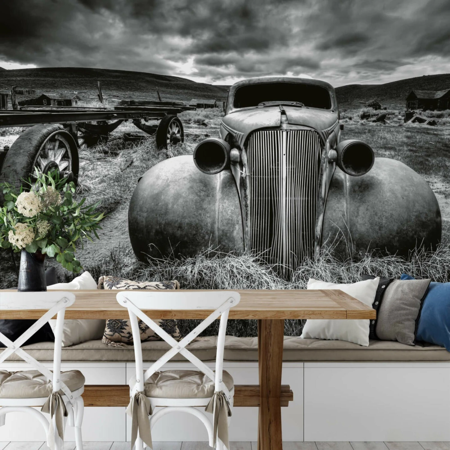 Fototapete DESIGNWALLS 2.0 – schwarz-weiß – Oldtimer – 2,6 Meter