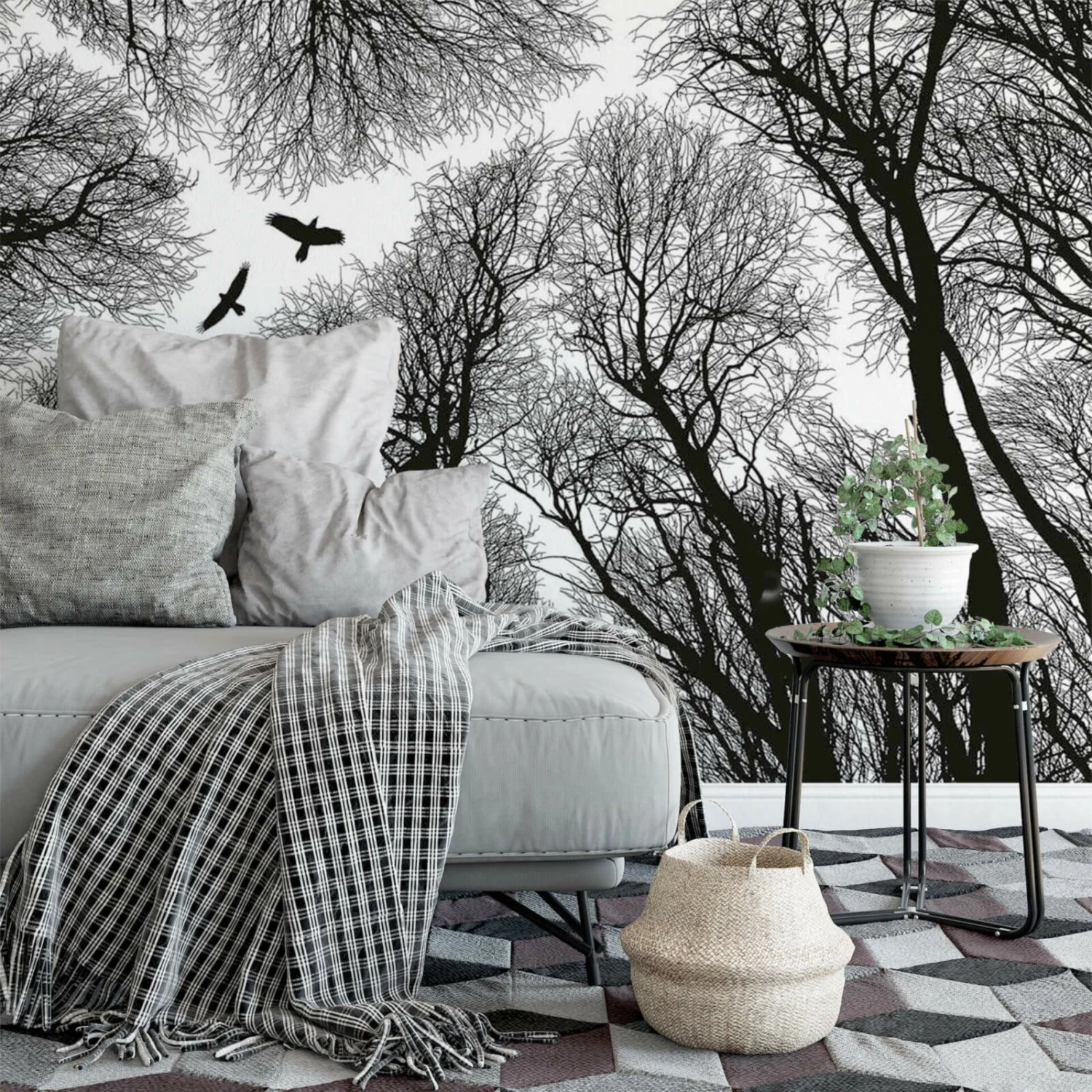 Mit unserer wunderschönen Wald Fototapete in der Farbe Schwarz sorgen Sie in Ihren vier Wänden für einen richtigen Eye Catcher. Die Tapete begeistert durch ihre Qualität und besteht aus einem hochwertigen Vlies. Sie ist waschbeständig, gut lichtbeständig und restlos trocken abziehbar. Die Maße sind 3,84 Meter x 2,6 Meter.