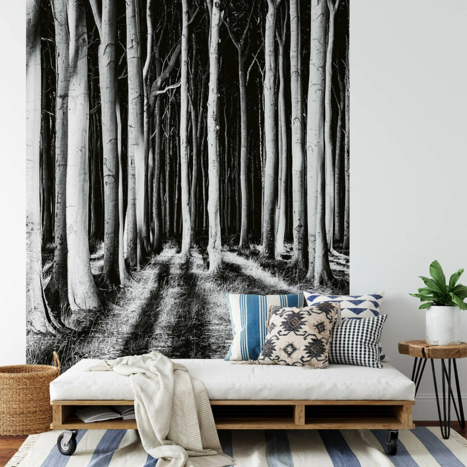 Fototapete DESIGNWALLS 2.0 – schwarz-weiß – Wald – 2,6 Meter