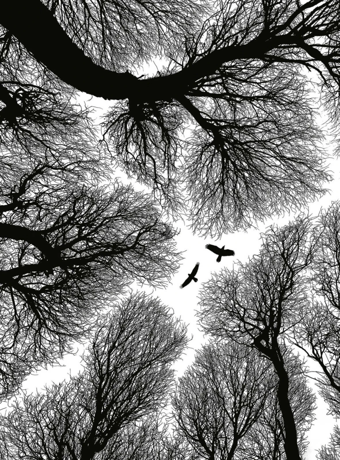 Fototapete DESIGNWALLS 2.0 – schwarz-weiß – Wald – 2,6 Meter
