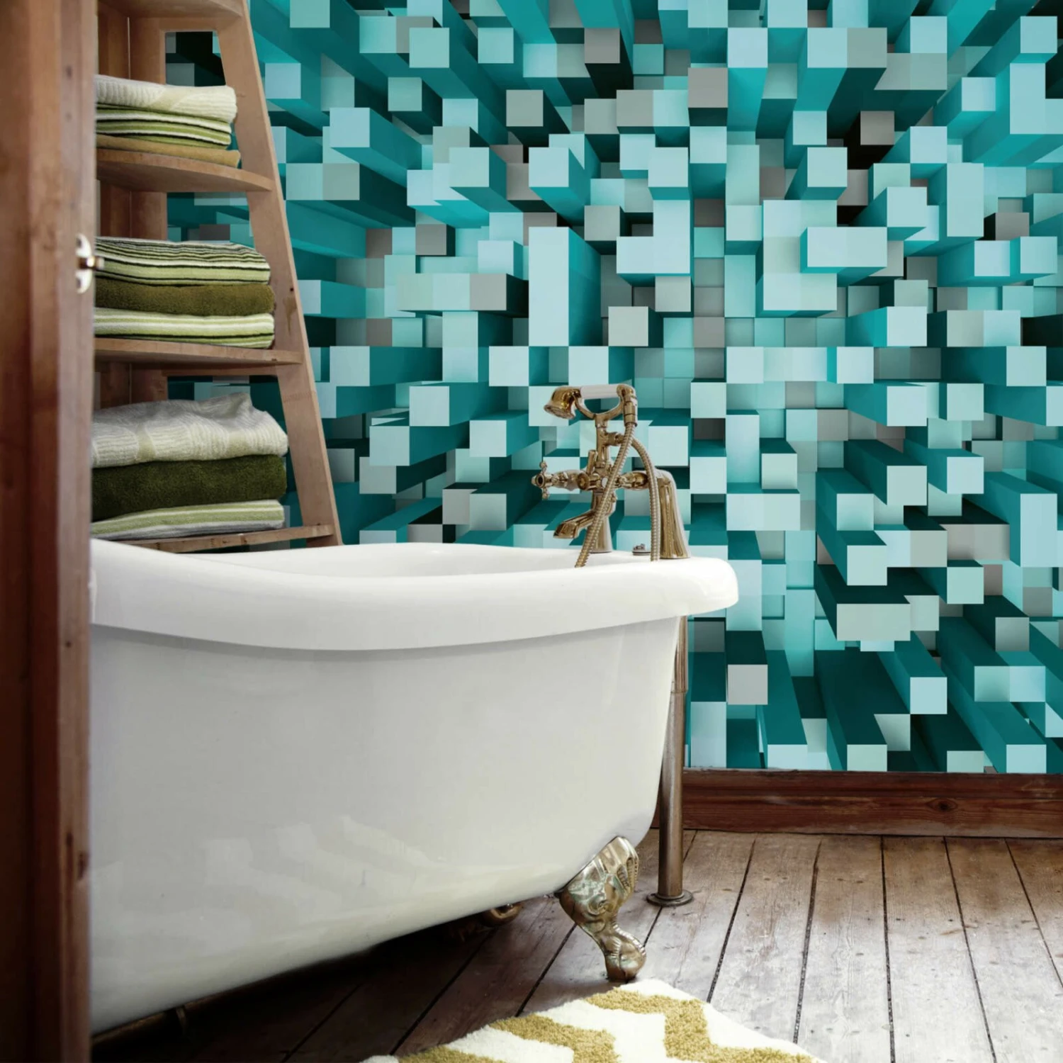 Diese stilvolle 3D Fototapete in der Farbe Türkis sorgt für ein angenehmes Wohnambiente in Ihrem Zuhause. Das Trägermaterial dieser Fototapete ist ein Vlies. Sie hat die Maße 3,84 Meter x 2,6 Meter und ist waschbeständig, gut lichtbeständig und restlos trocken abziehbar.