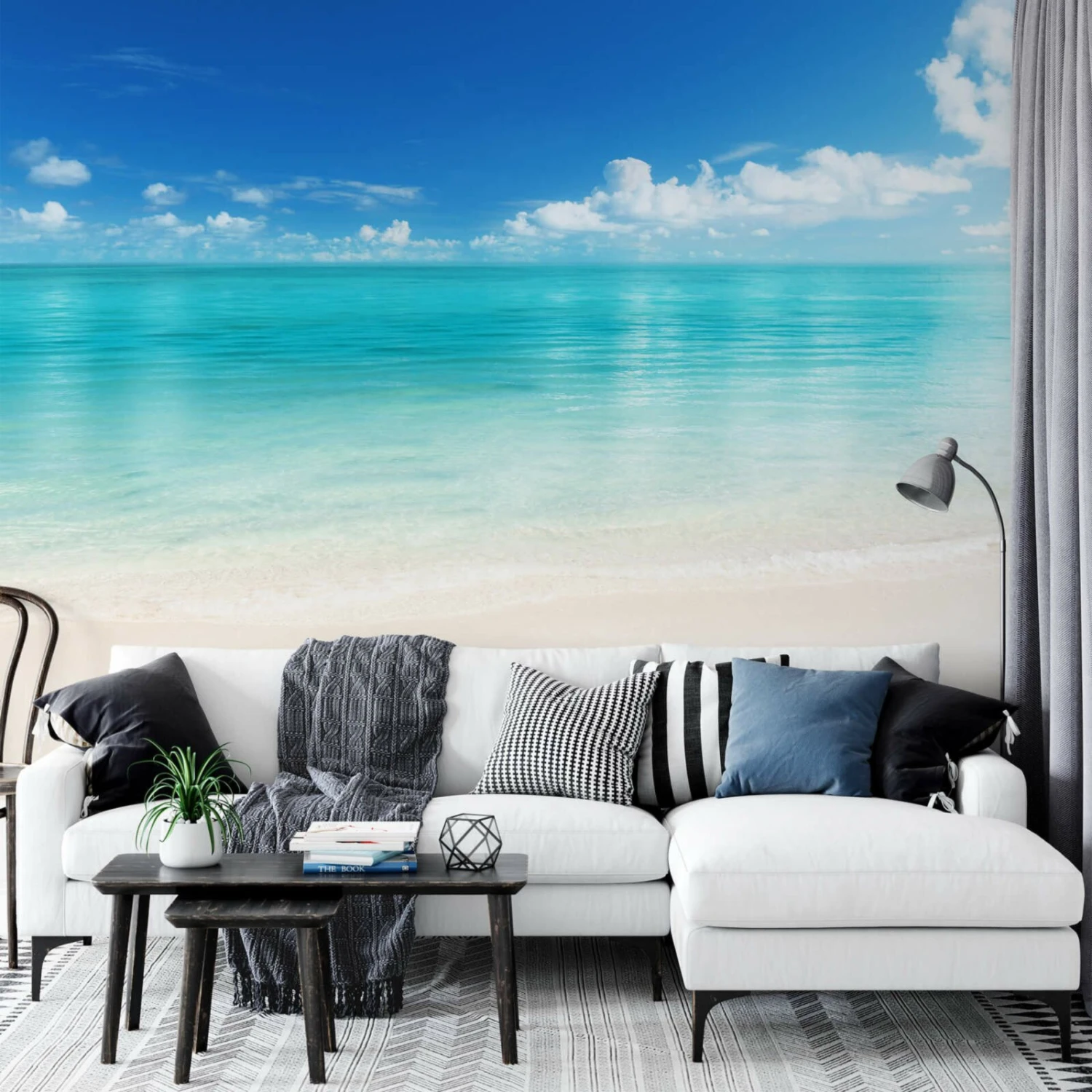 Mit unserer wunderschönen Strand Fototapete in der Farbe Türkis sorgen Sie in Ihren vier Wänden für einen richtigen Eye Catcher. Die Tapete begeistert durch ihre Qualität und besteht aus einem hochwertigen Papier. Sie ist waschbeständig, gut lichtbeständig und nass zu entfernen. Die Maße sind 3,66 Meter x 2,54 Meter.