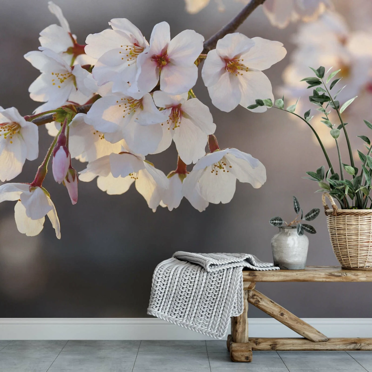 Diese stilvolle Kirschblüte Fototapete in der Farbe Weiß sorgt für ein angenehmes Wohnambiente in Ihrem Zuhause. Das Trägermaterial dieser Fototapete ist ein Vlies. Sie hat die Maße 3,84 Meter x 2,6 Meter und ist waschbeständig, gut lichtbeständig und restlos trocken abziehbar.