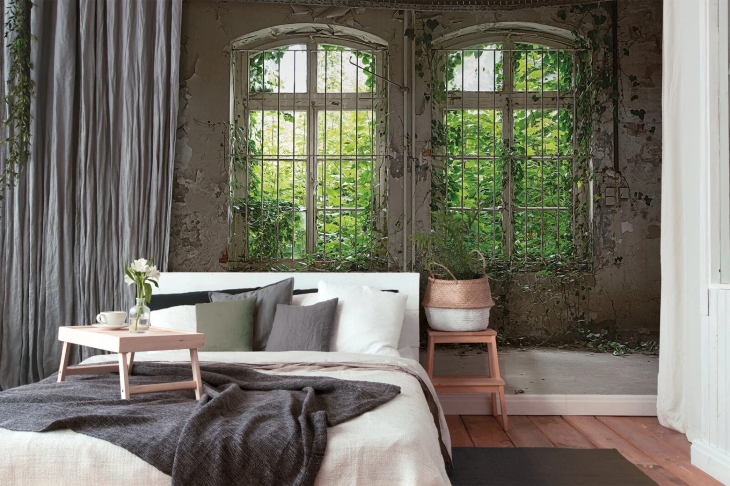 Fototapete DESIGNWALLS – grün-grau – Fenster – 2,55 Meter