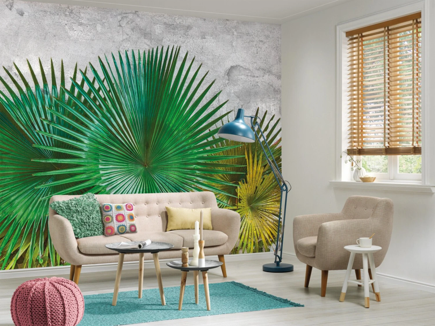 Fototapete DESIGNWALLS – grün-grau – Palmen – 2,55 Meter