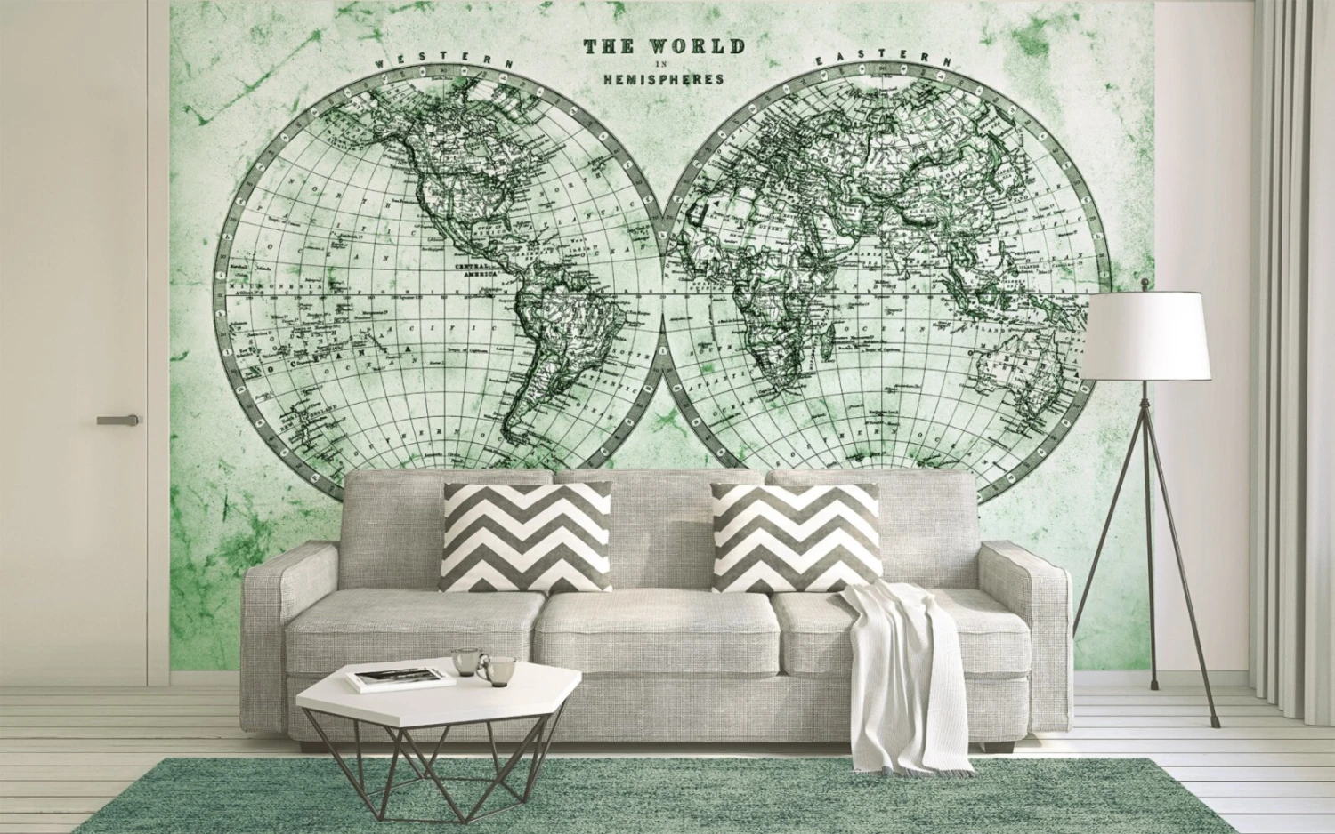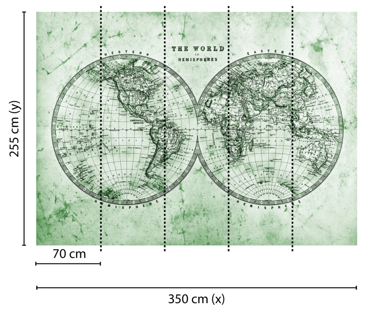 Fototapete DESIGNWALLS – grün-grau – Weltkarte – 2,55 Meter