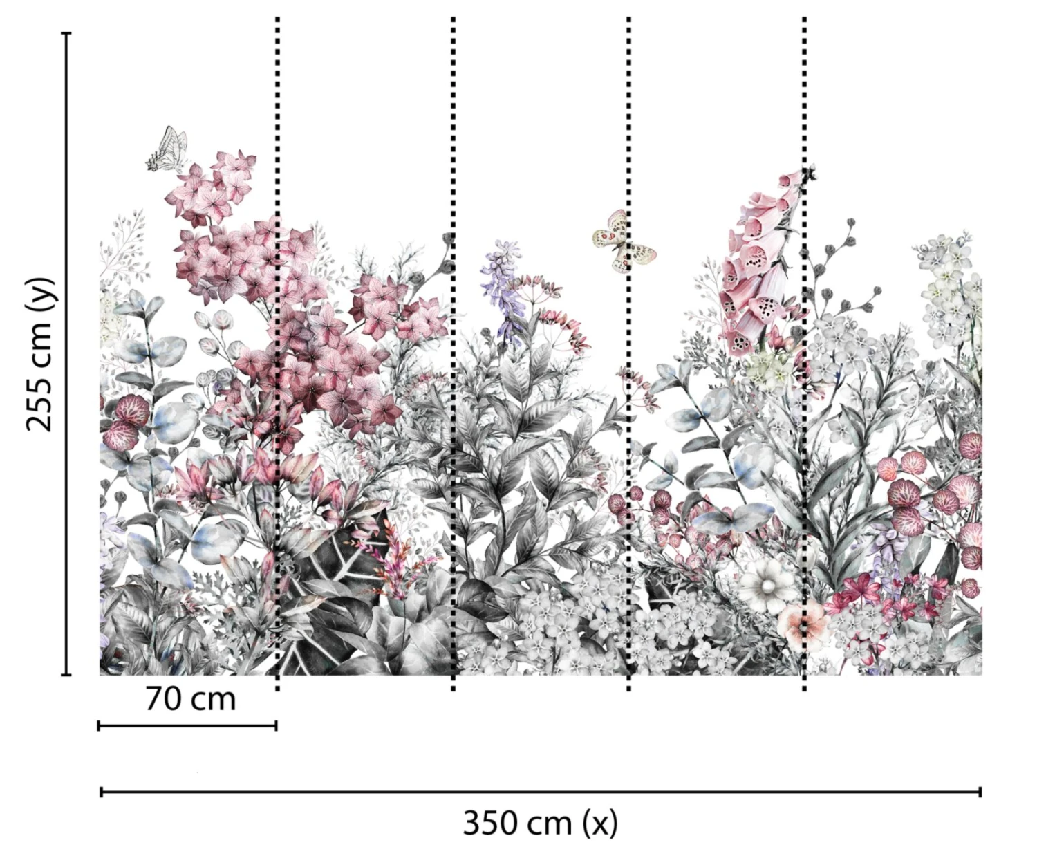 Fototapete DESIGNWALLS – rosa-grau – Blumen – 2,55 Meter