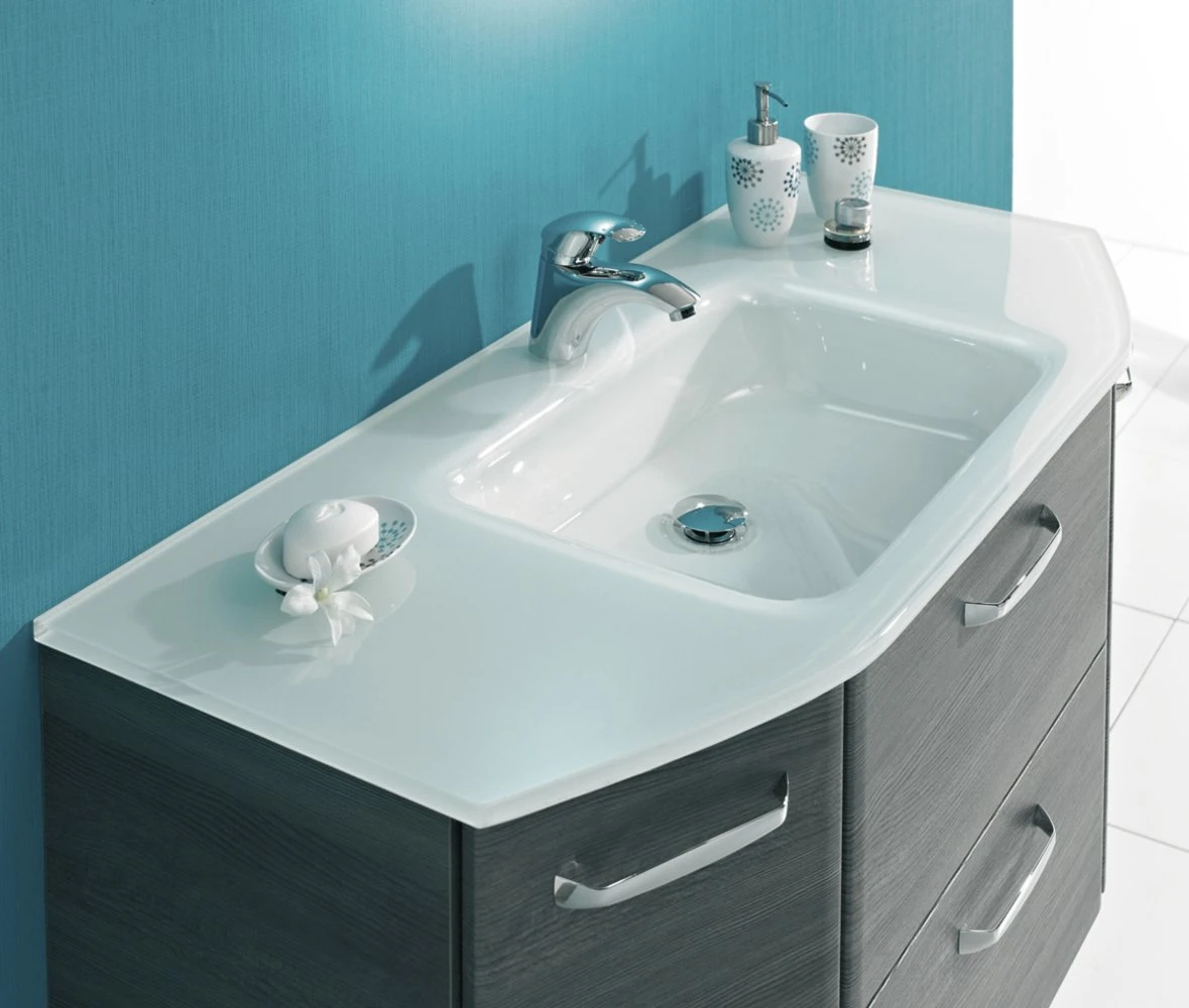 Der schöne Glaswaschtisch wird das Highlight ihres Badezimmers. Dekorieren Sie ihn nach eigener Vorstellung.