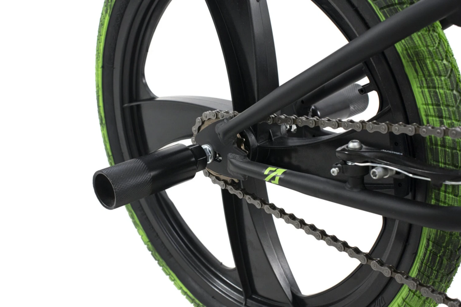 Mit dem schwarz-grünen BMX-Bike Freestyle CRUSHER können coole Tricks erlernt und ausgeübt werden. Das 20 Zoll BMX-Rad ist am zweiteiligen Stahllenker mit einem 360° Rotorsystem ausgestattet, das Drehungen um die eigene Achse ermöglicht und die Stahlpegs sind im Lieferumfang mit inbegriffen und sind eine optimale Unterstützung für eindrucksvolle BMX Stunts.