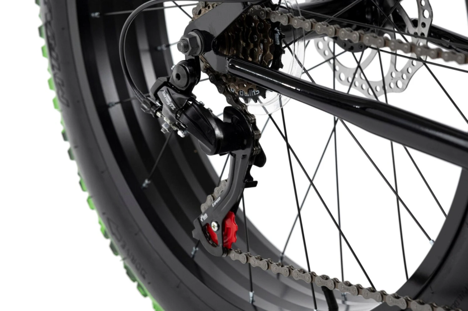 - Felgen: Aluminium-Fatbike-Felgen mit je 36 Speichen
