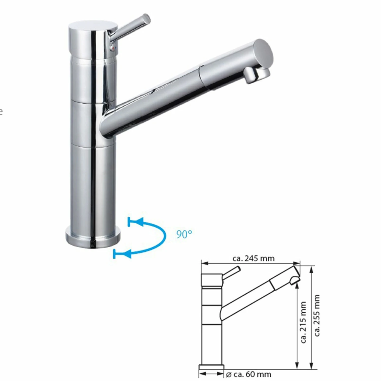 Diese Küchenarmatur passt sich besonders flexibel Ihren Bedürfnissen an, durch 90° Schwenkbarkeit und Ausziehbarkeit. Das edle Design in Chrom setzt zudem einen gekonnten optischen Akzent in Ihrer stylischen Küche.