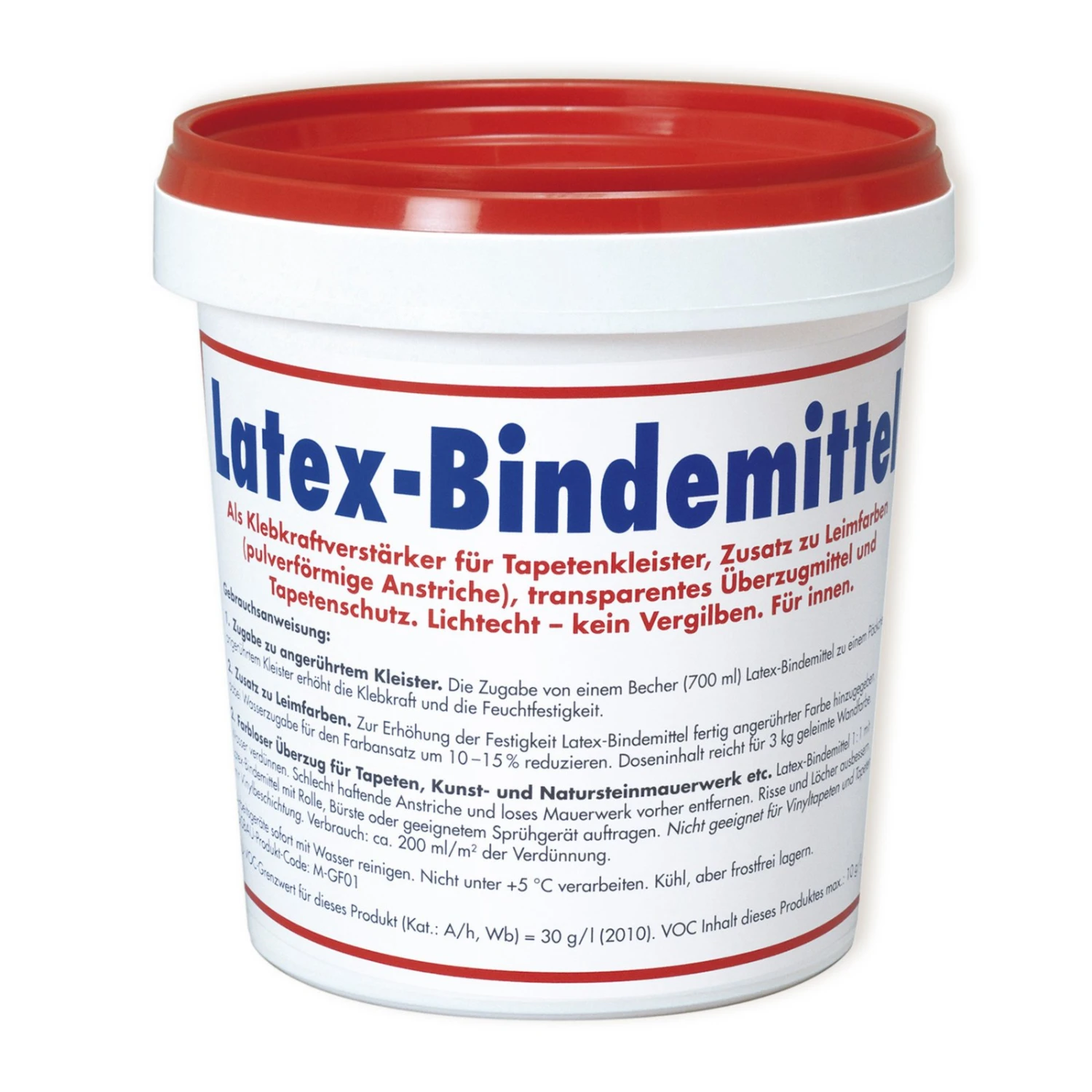 Dieses farblose KVS Latex-Bindemittel dient zur Erhöhung der Waschfestigkeit von geleimter Wandfarbe, sowie als Klebkraftverstärker für Tapetenkleister.