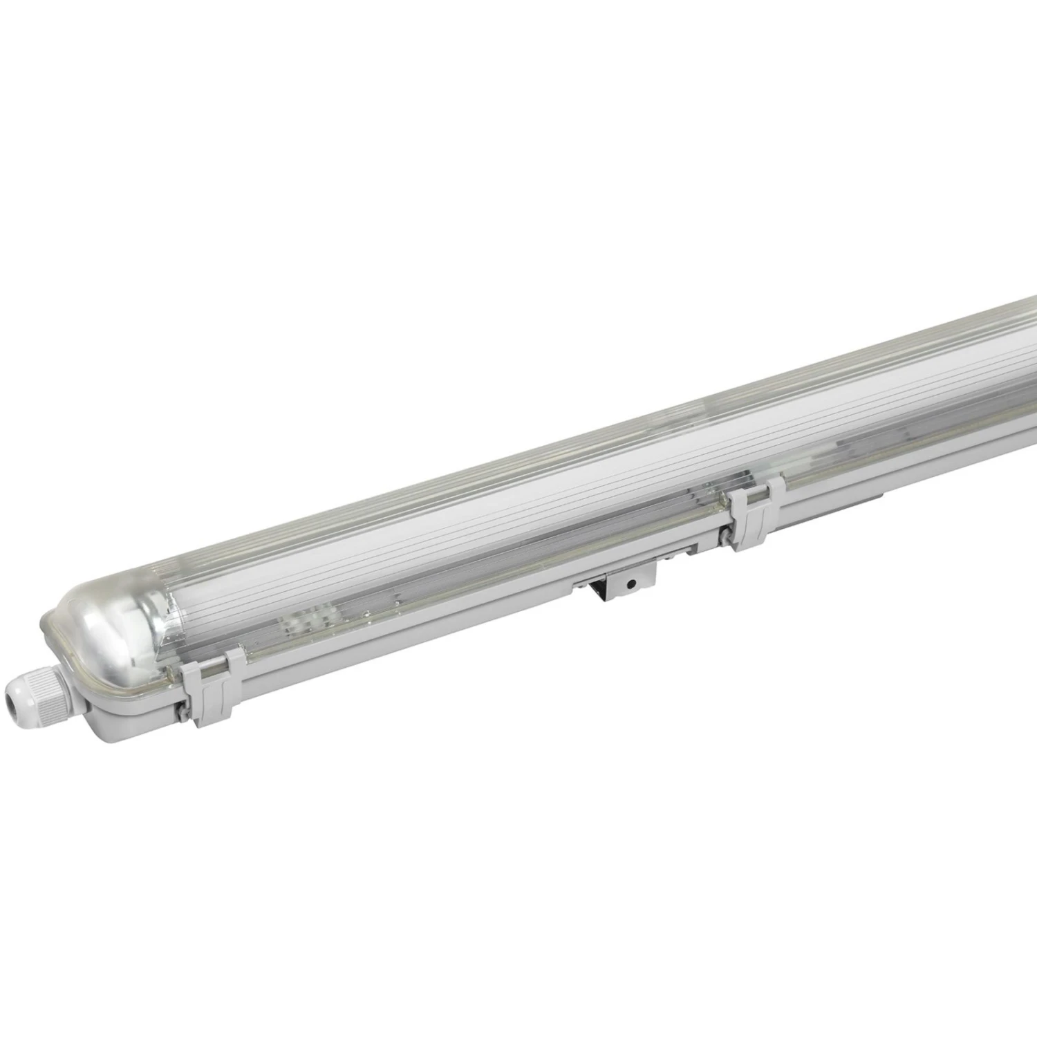 Die staubdichte und strahlwassergeschützte LED-Feuchtraumleuchte eignet sich sowohl für Ihren Außen- als auch Innenbereich, wie zum Beispiel für Ihren Keller, Ihre Garage oder auch für die Werkstatt. Mit einer Länge von etwa 128 Zentimeter und dem LED-Leuchtmittel wird sie in jedem Bereich für reichlich Licht sorgen.