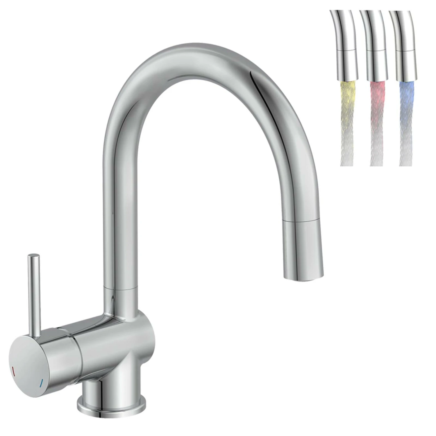 LED-Küchenarmatur – silber – Hochdruck – mit Farbwechsel