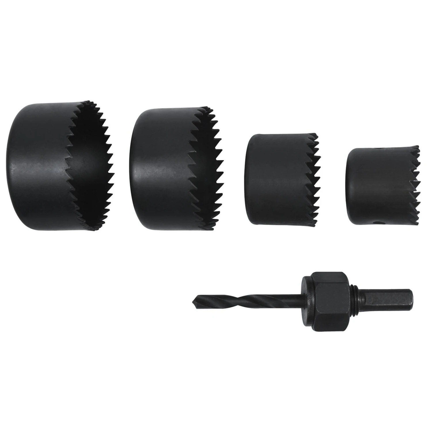 Mit diesem Lochsägenset können Sie runde Schnitte verschiedener Durchmesser in Holz und Kunststoff durchführen. Die maximale Schnitttiefe von etwa 25 mm in Verbindung mit dem im Lieferumfang enthaltenen Zentrierbohrer macht dieses Set vielseitig einsetzbar.