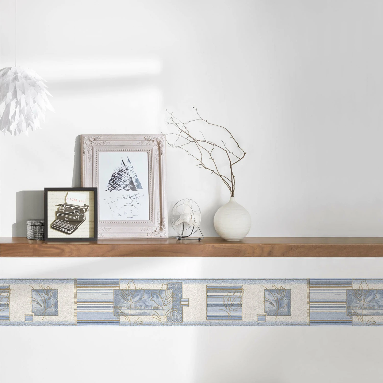 Bordüren lassen sich einfach und schnell verarbeiten und werden im Handumdrehen zu optischen Highlights. In unserem Sortiment haben wir eine große Vielfalt wunderschöner Bordüren für Sie. Diese in der Farbe Blau mit den Maßen 5,00 Meter x 0,13 Meter wird direkt zu einem Blickfang an Ihrer Wand. Das Trägermaterial besteht aus einem hochwertigen Papier. Sie ist hoch waschbeständig und gut lichtbeständig.
