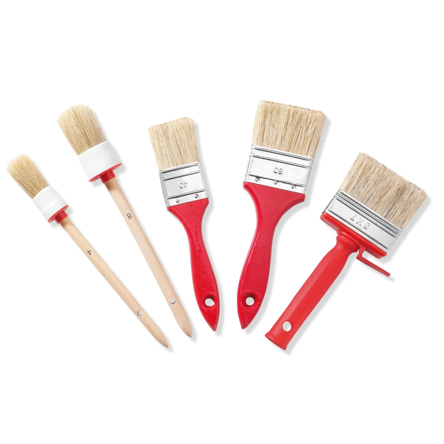 Pinsel-Set – rot – 5-teilig – Naturborsten