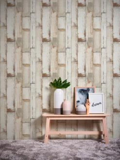 Vliestapeten – creme – Holzoptik – 10 Meter
