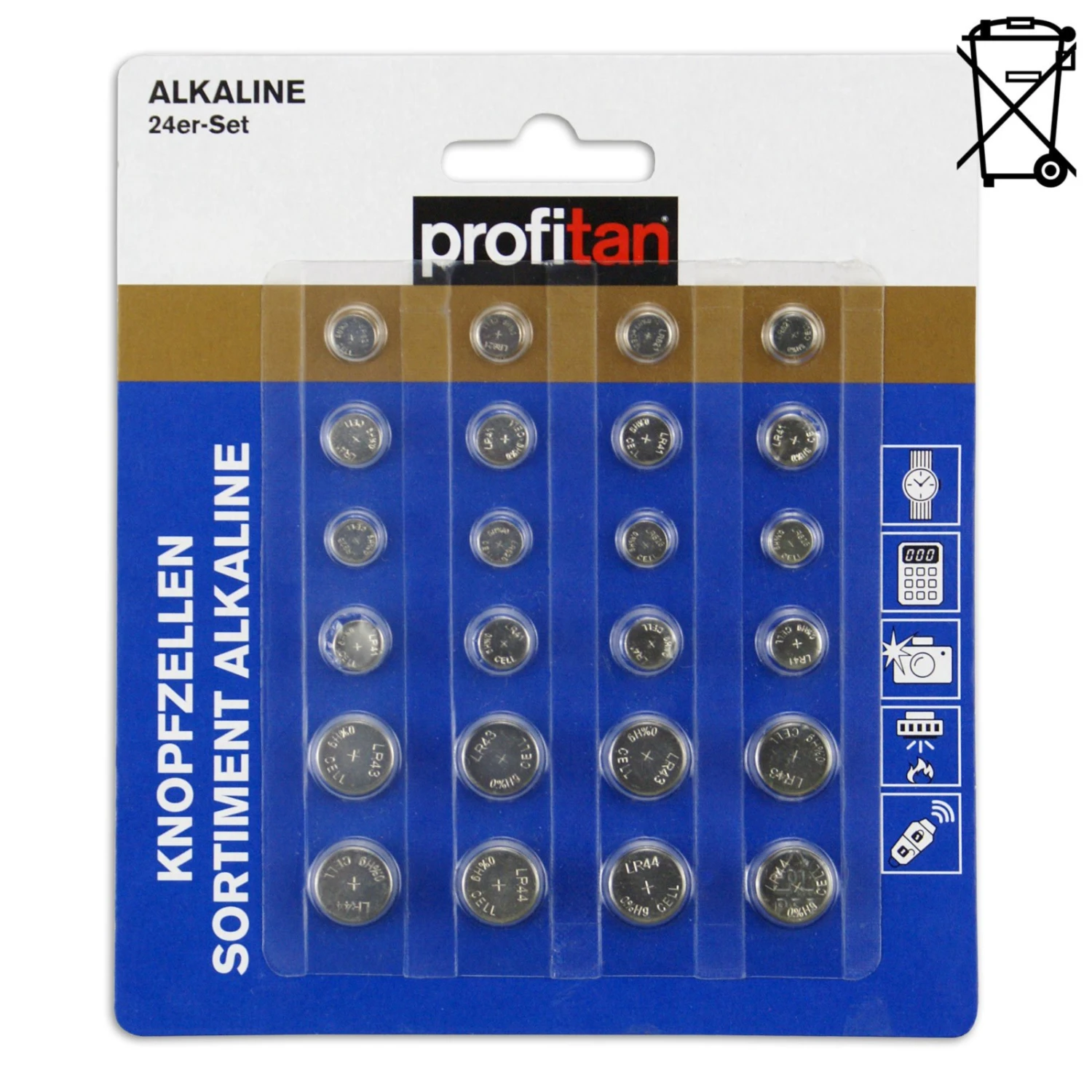 profitan 24er-Pack Knopfzellen-Sortiment – Alkaline und Lithium – sortiert