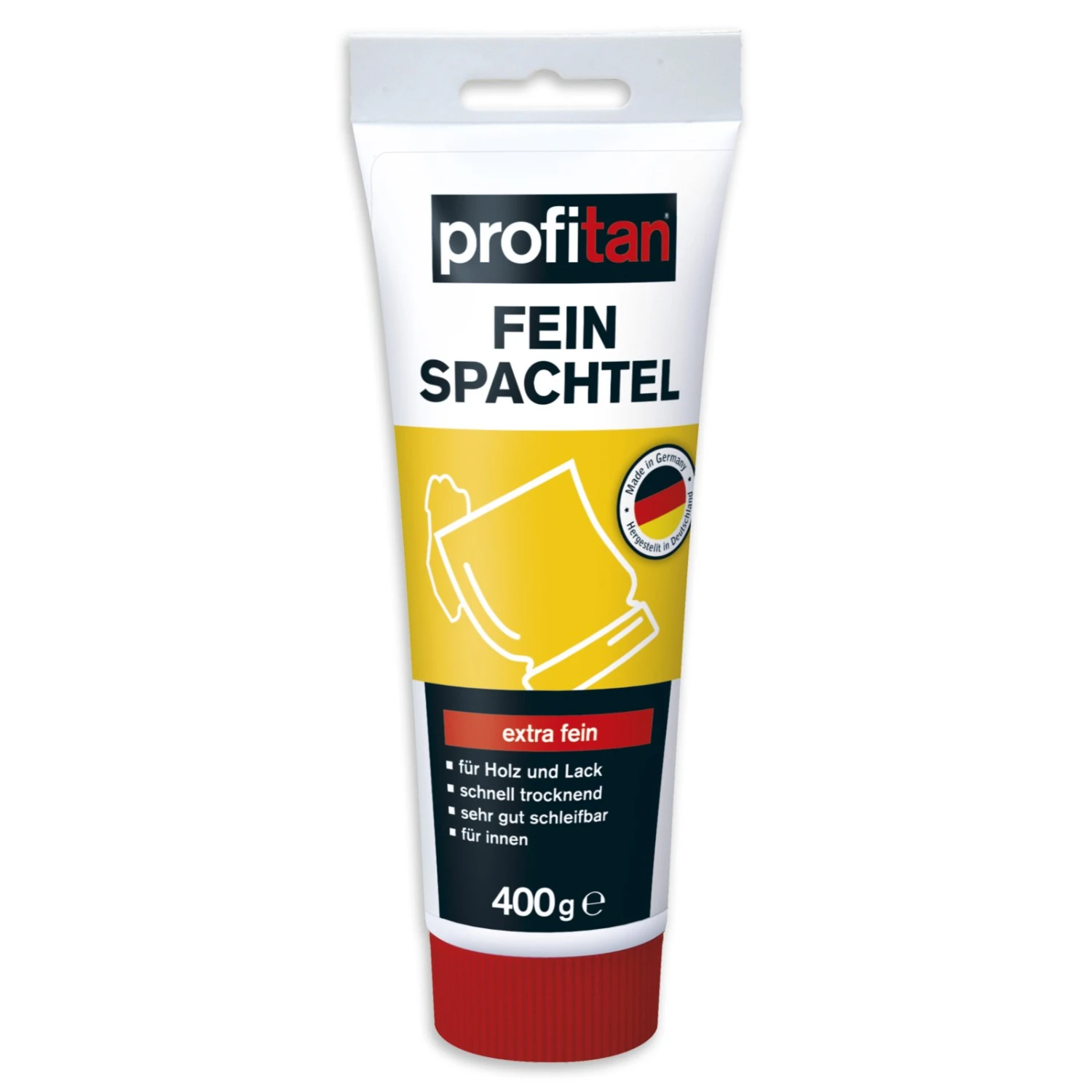 Der profitan Feinspachtel ist vielseitig einsetzbar auf und an Holz, Gips, Lack oder zum Verspachteln von Rissen und Dübellöchern oder zum Ausgleichen von Unebenheiten. Ein Alroundtalent für Ihren Haushalt! Der extra feine Spachtel lässt sich im Nachhinein gut verarbeiten und schleifen. Nutzen Sie die fertige Masse überall im Innenbereich, wenn schnelle Hilfe benötigt wird.