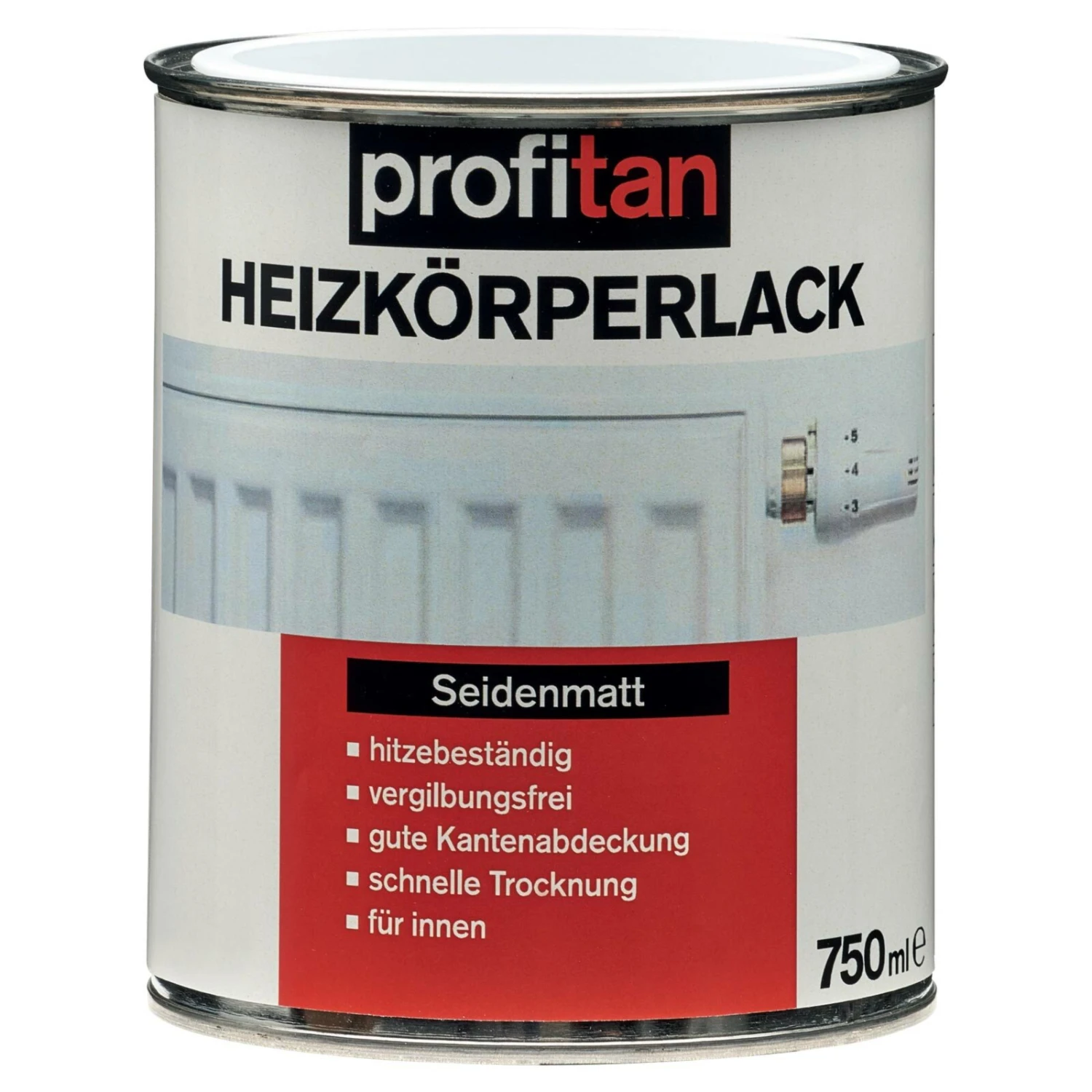 Seidenmatter Heizkörperlack profitan in Weiß. Dieser Lack ist vergilbungsfrei und deckt auch die Kanten perfekt ab.
