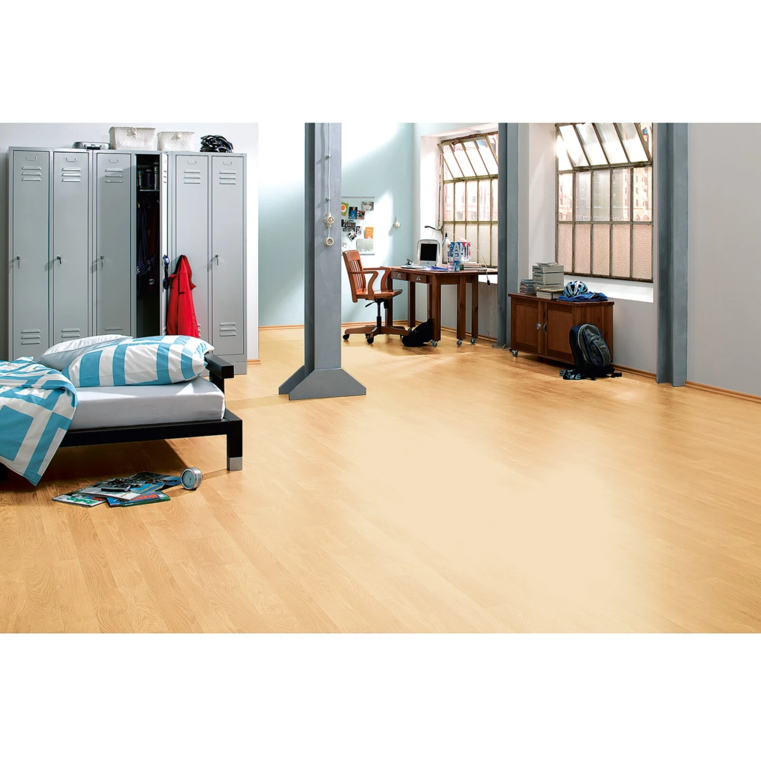 Standard – unser Laminatfußboden, der bei allem mitspielt. Belastbar, widerstandsfähig und langlebig, fügt er sich perfekt in alle Lebenslagen ein. Er eignet sich optimal für Wohnbereiche mit alltäglicher Belastung.