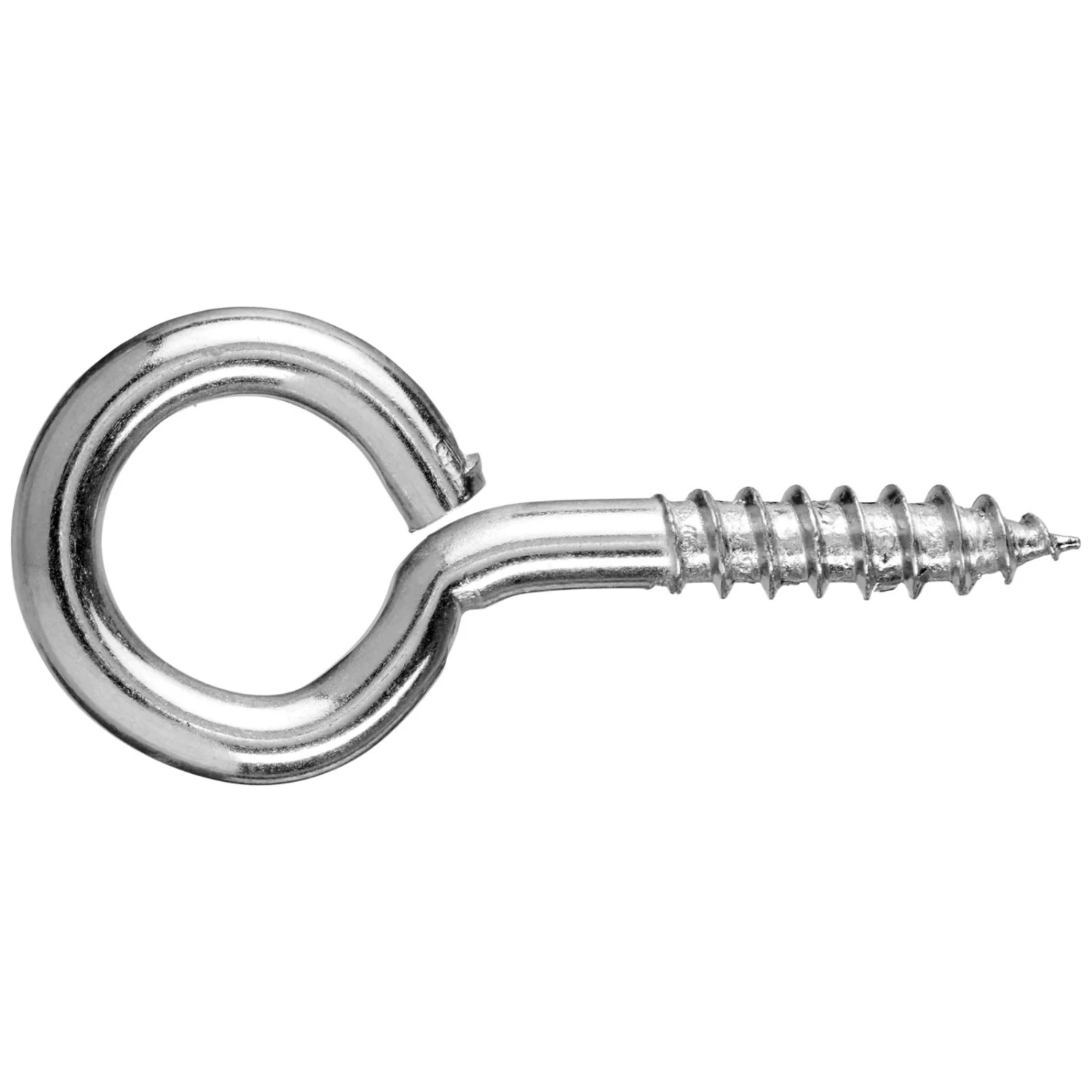 Diese Ringschrauben sind verzinkt und haben eine Länge von etwa 25 mm.