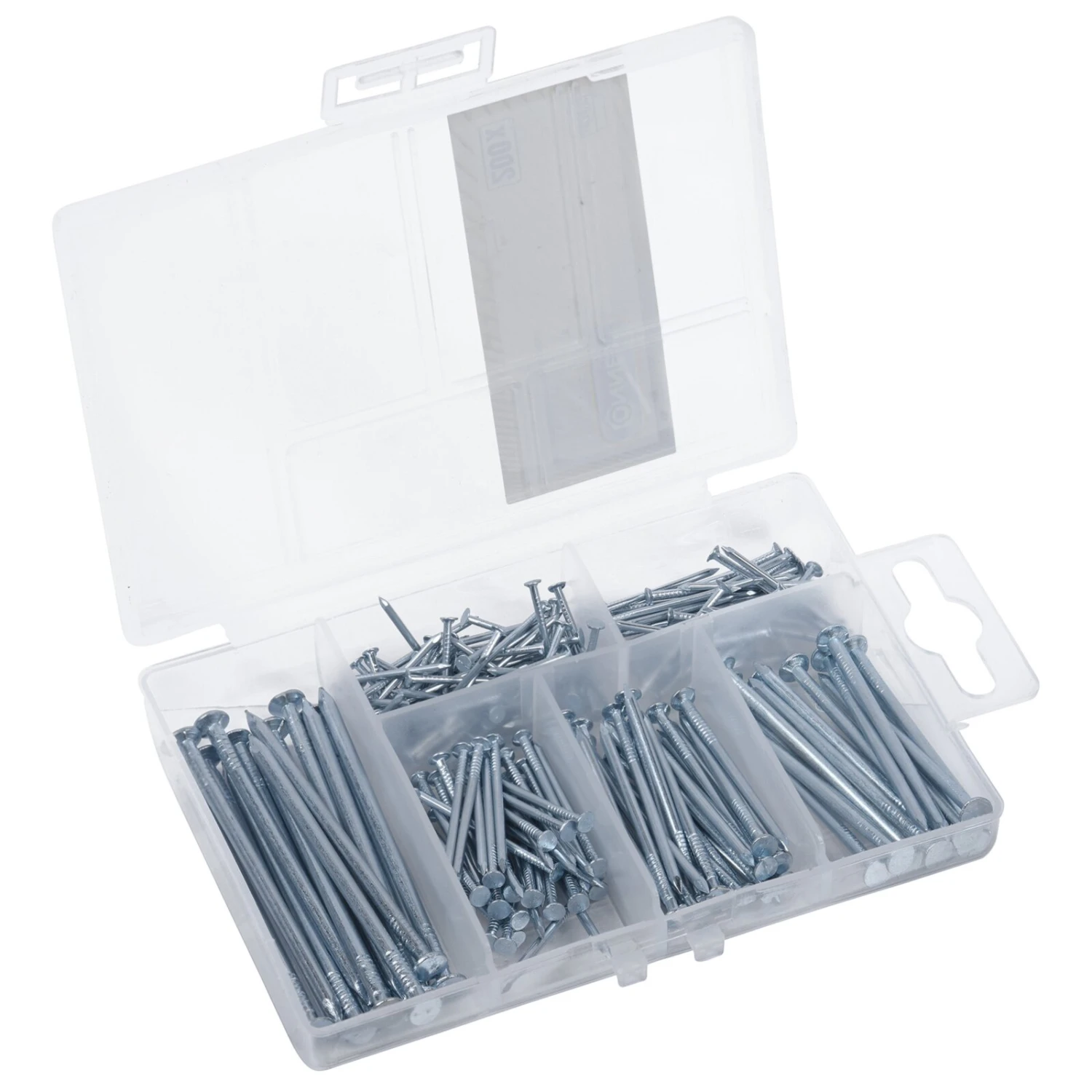 Mit diesem praktischen Sortimentskasten haben Sie immer den passenden Nagel zur Hand. Hier finden Sie 200 Nägel in verschiedenen Größen, um beispielsweise Bilder zuhause aufzuhängen.